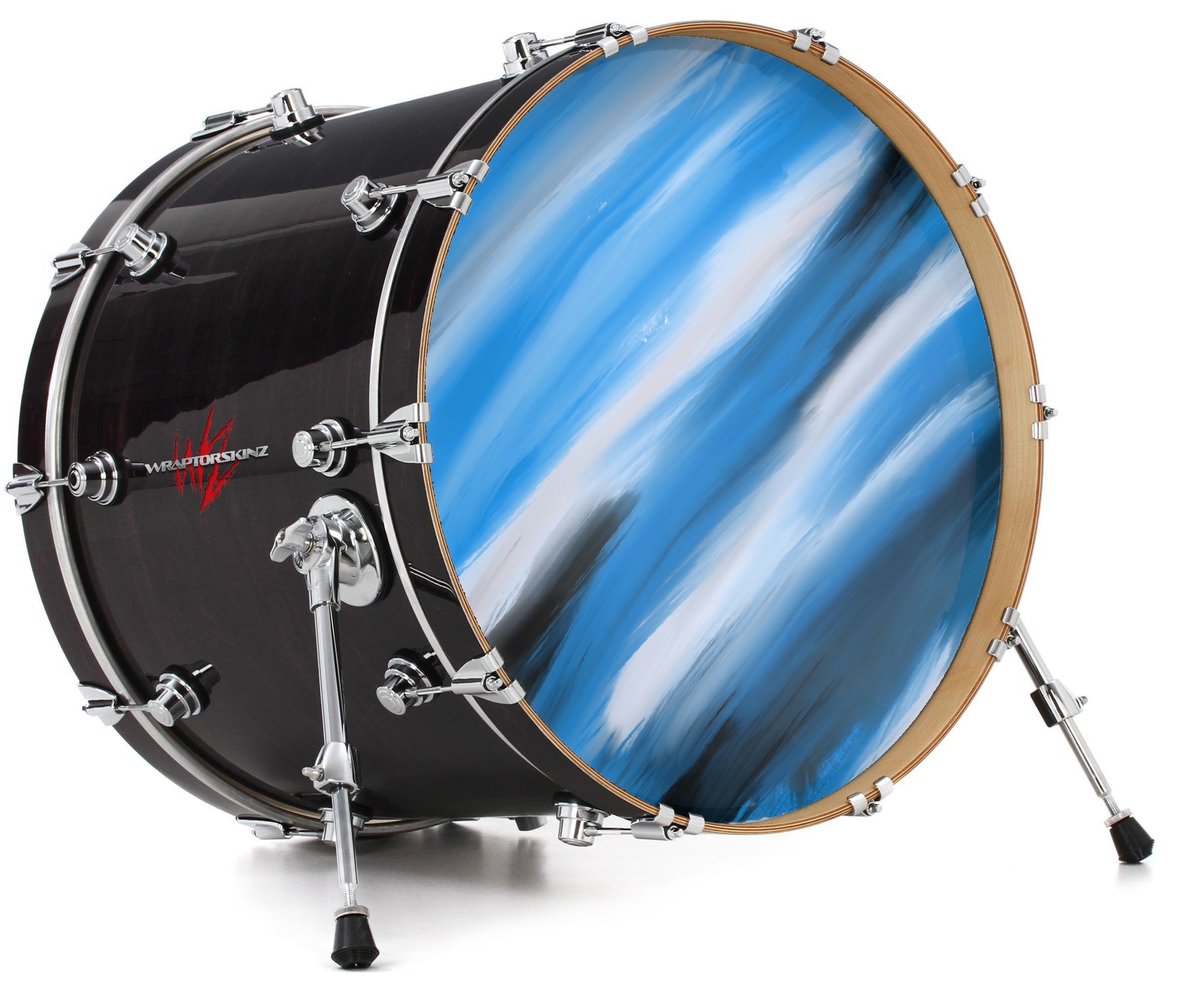 This design also available in other sizes. WraptorSkinz® skin wraps compatible with most kick drum heads. Printed using superb photo quality designs and vibrant colors printed with special fade resistant inks that last even in direct sun for years. WraptorSkinz are a composite three layer commercial grade materials vinyl. The bottom layer is a air release, grey block out removable adhesive that hides existing graphics on the drum head and is easily applied without air bubbles. The middle layer is a flexible vinyl printed with UV protected, fade resistant inks that deliver superb photo quality designs in vibrant colors. Finally, we bond a professional grade laminate over the entire skin adding a glossy protective finish.