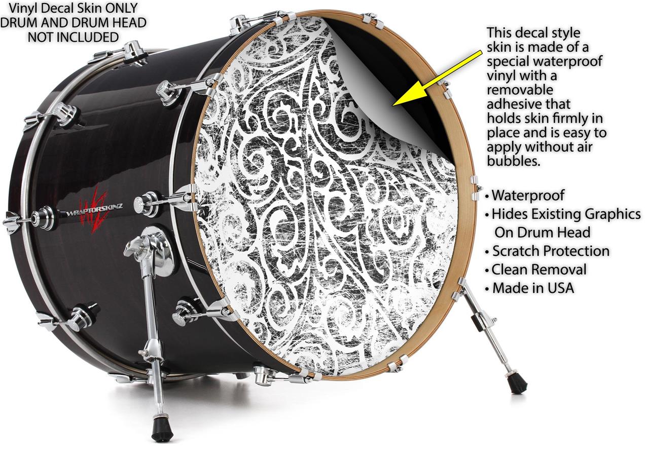 Decal Skin works with most 26" Bass Kick Drum Heads Folder Doodles White - DRUM HEAD NOT INCLUDED