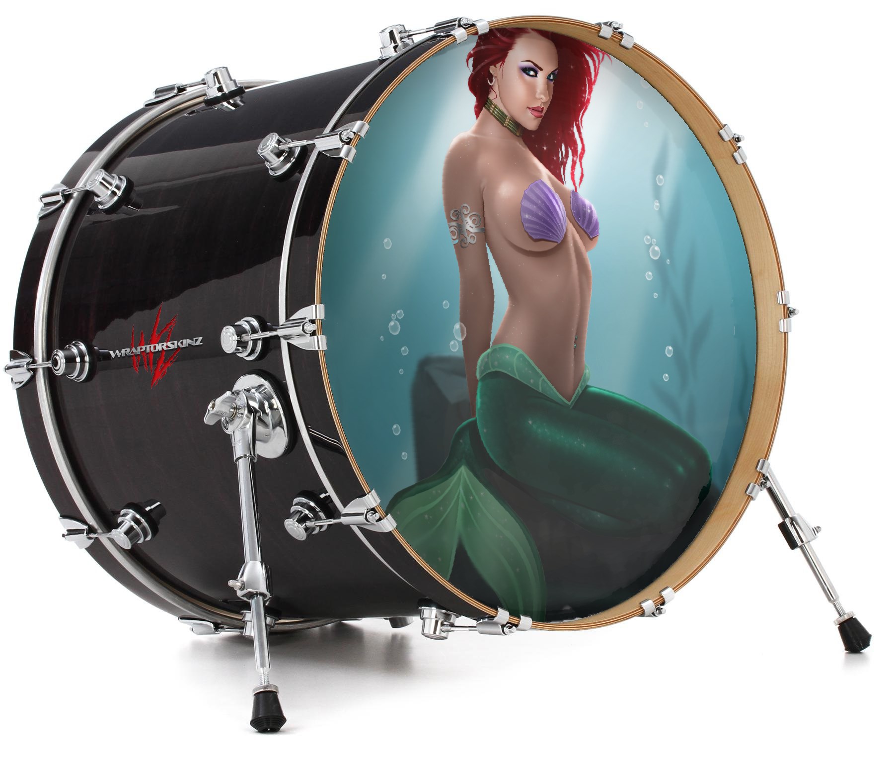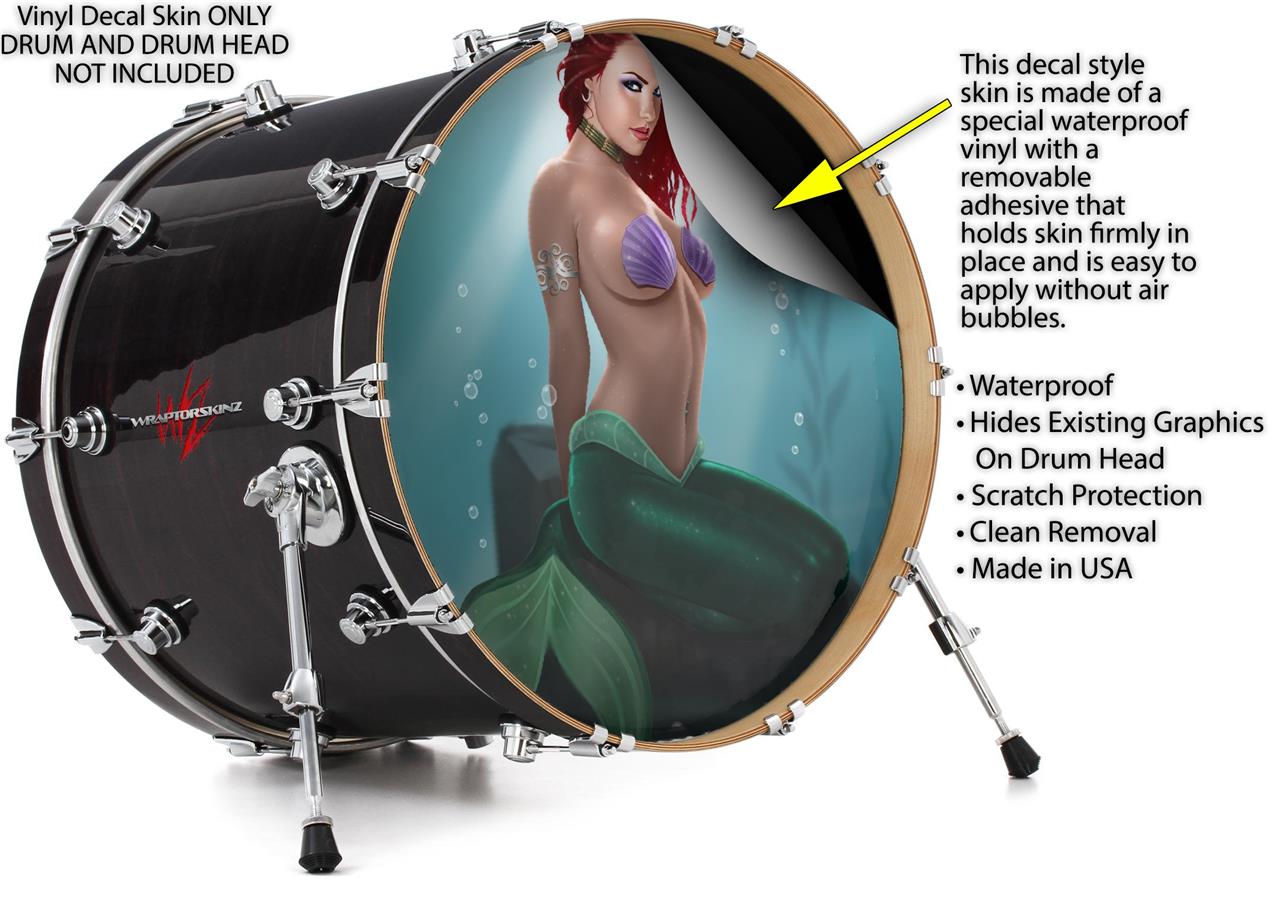 Decal Skin works with most 26" Bass Kick Drum Heads Mermaid Sexy Pinup Girl - DRUM HEAD NOT INCLUDED