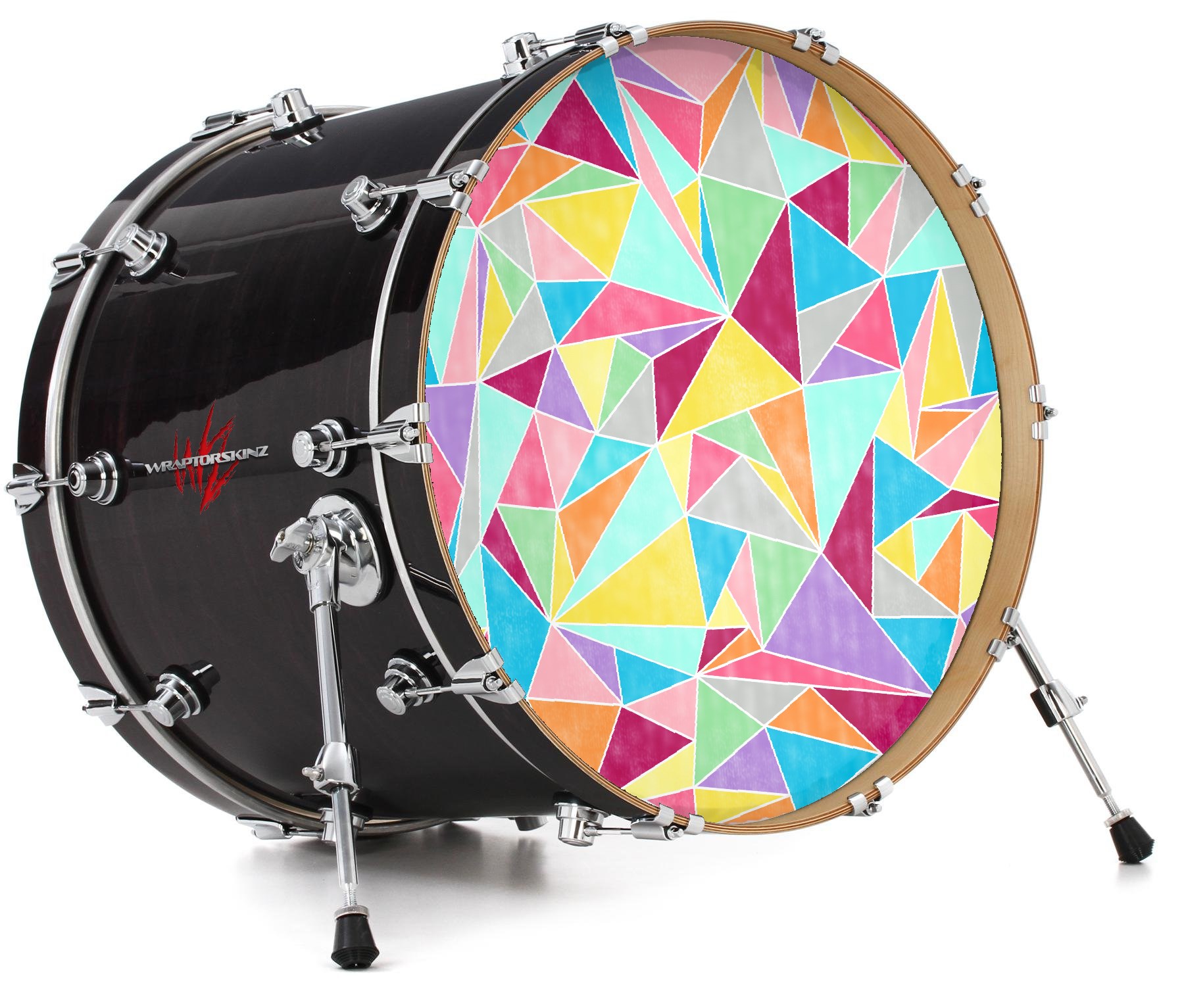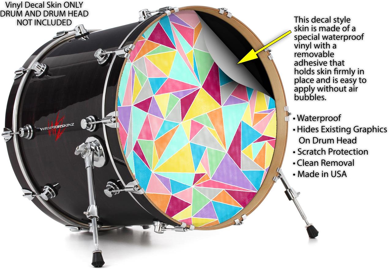 This design also available in other sizes. WraptorSkinz® skin wraps compatible with most kick drum heads. Printed using superb photo quality designs and vibrant colors printed with special fade resistant inks that last even in direct sun for years. WraptorSkinz are a composite three layer commercial grade materials vinyl. The bottom layer is a air release, grey block out removable adhesive that hides existing graphics on the drum head and is easily applied without air bubbles. The middle layer is a flexible vinyl printed with UV protected, fade resistant inks that deliver superb photo quality designs in vibrant colors. Finally, we bond a professional grade laminate over the entire skin adding a glossy protective finish.