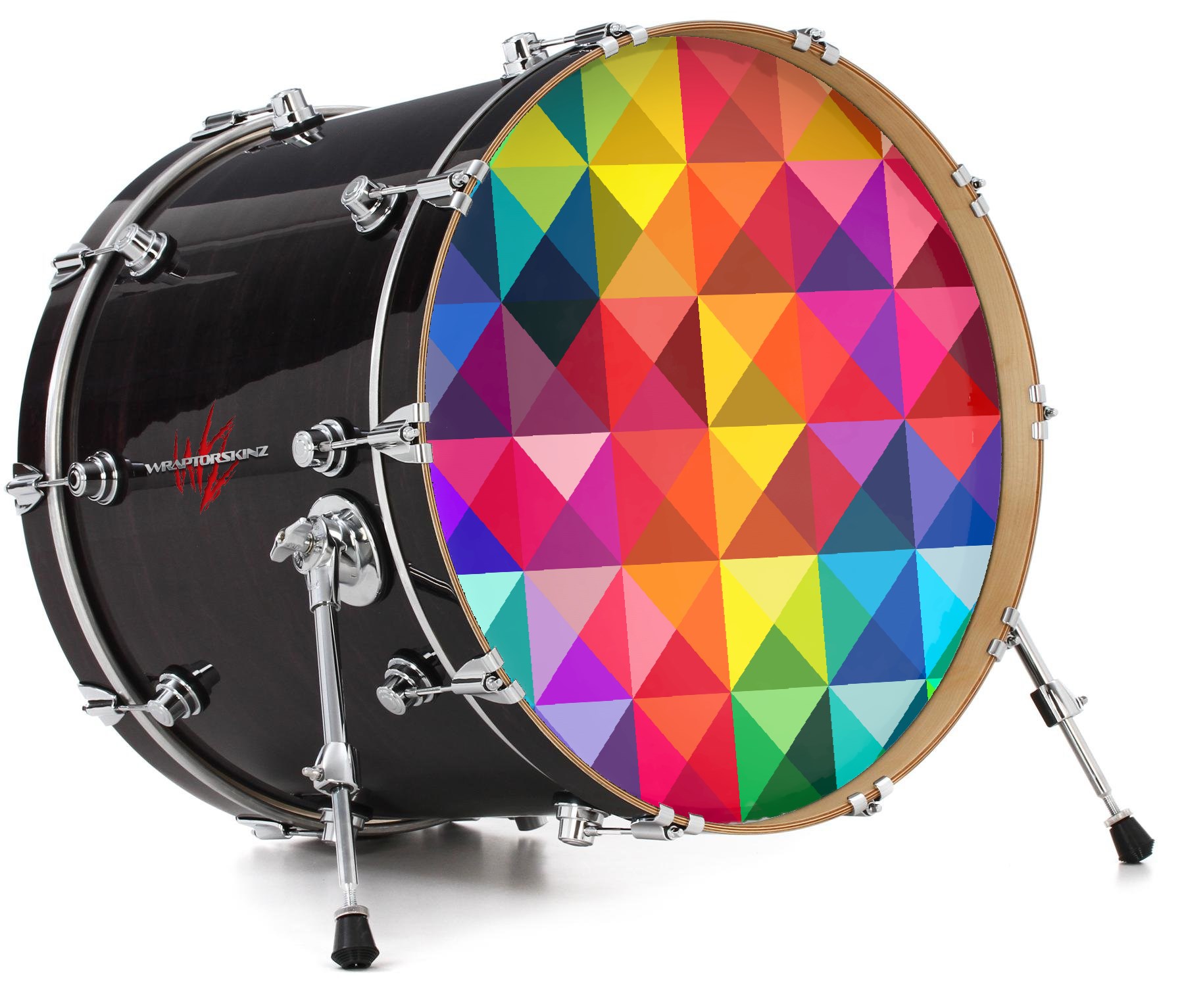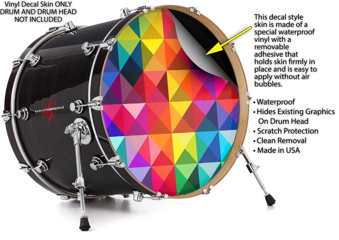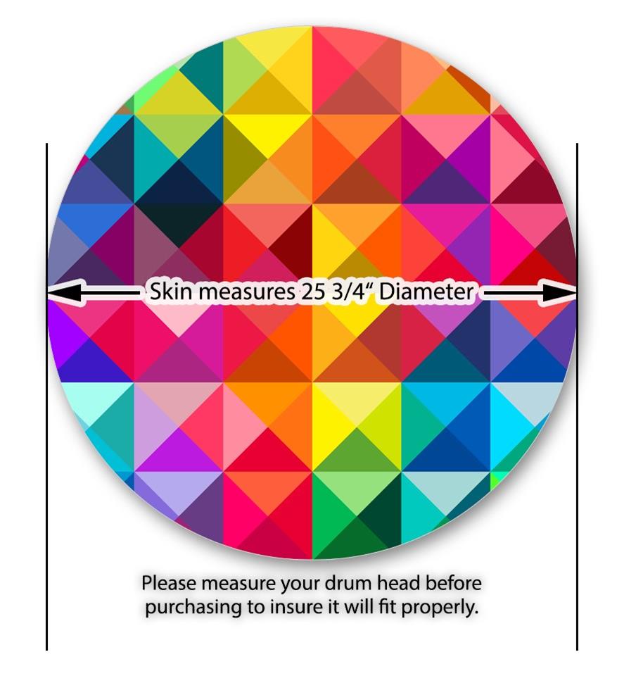 This design also available in other sizes. WraptorSkinz® skin wraps compatible with most kick drum heads. Printed using superb photo quality designs and vibrant colors printed with special fade resistant inks that last even in direct sun for years. WraptorSkinz are a composite three layer commercial grade materials vinyl. The bottom layer is a air release, grey block out removable adhesive that hides existing graphics on the drum head and is easily applied without air bubbles. The middle layer is a flexible vinyl printed with UV protected, fade resistant inks that deliver superb photo quality designs in vibrant colors. Finally, we bond a professional grade laminate over the entire skin adding a glossy protective finish.