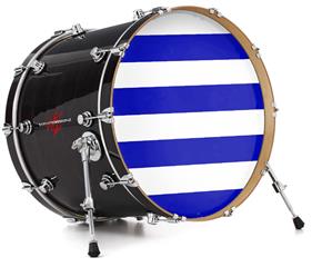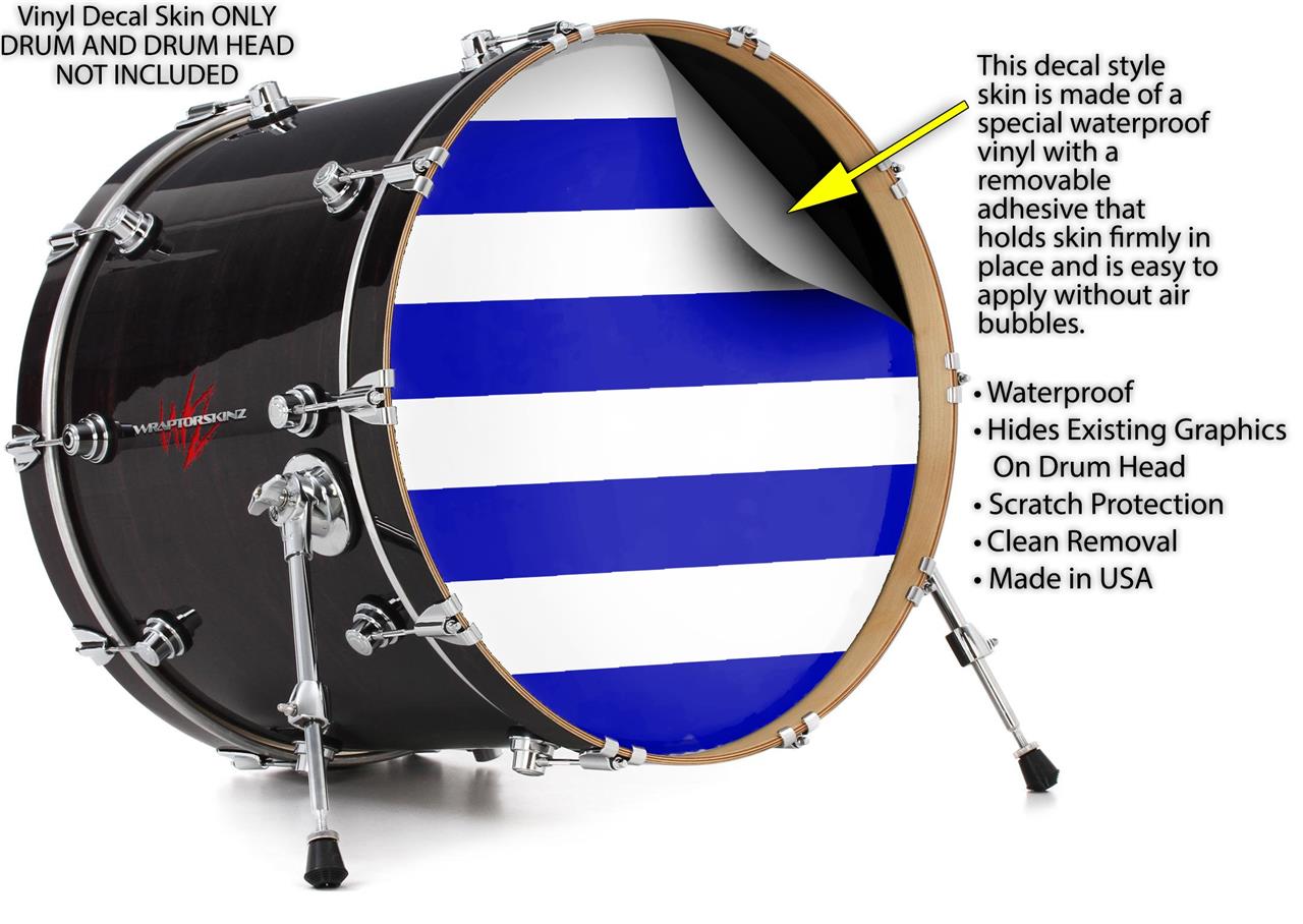 Decal Skin works with most 26" Bass Kick Drum Heads Psycho Stripes Blue and White - DRUM HEAD NOT INCLUDED