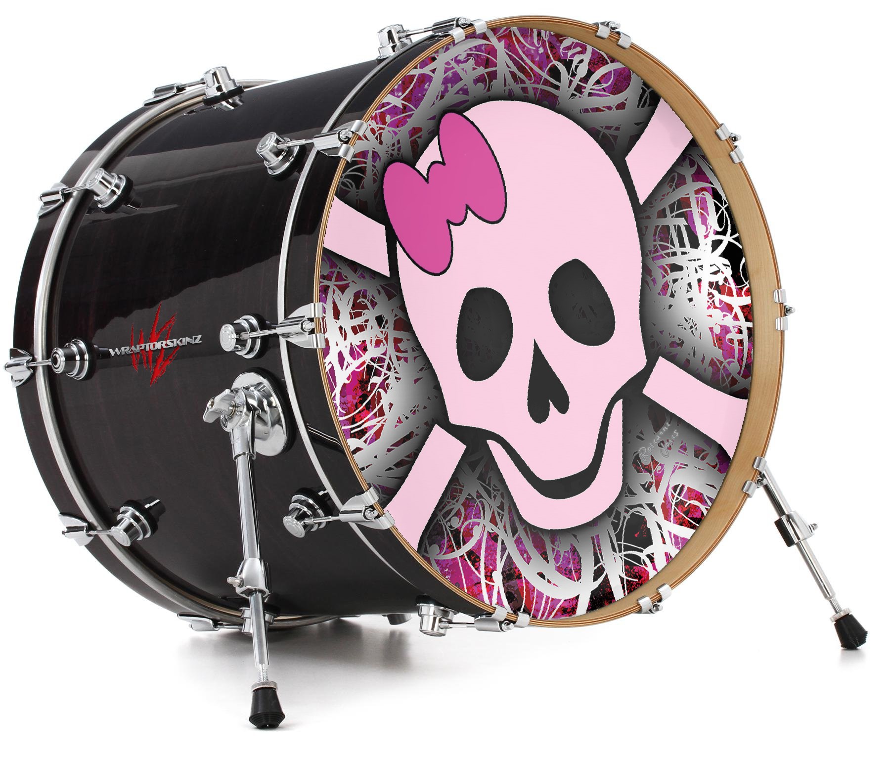 Decal Skin works with most 26" Bass Kick Drum Heads Pink Skull - DRUM HEAD NOT INCLUDED