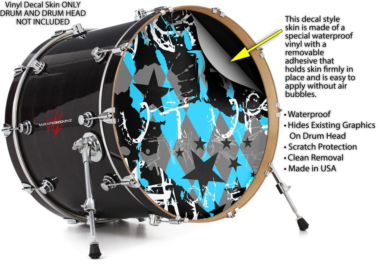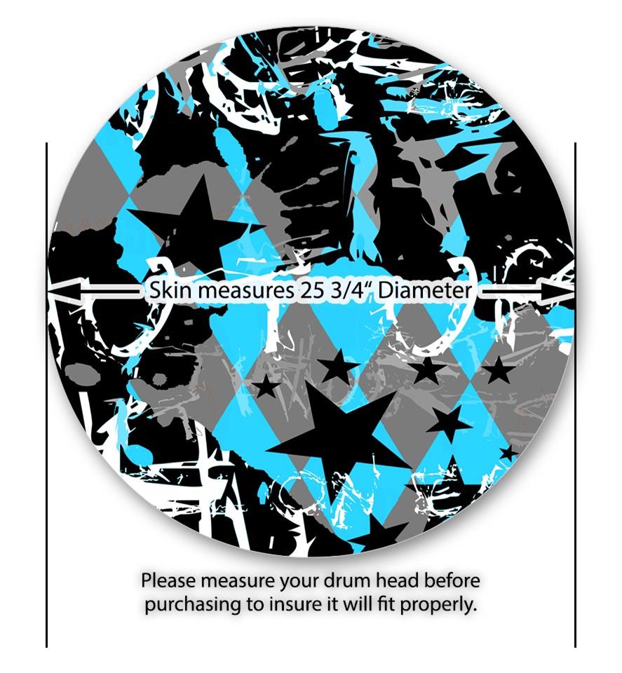 Decal Skin works with most 26" Bass Kick Drum Heads SceneKid Blue - DRUM HEAD NOT INCLUDED