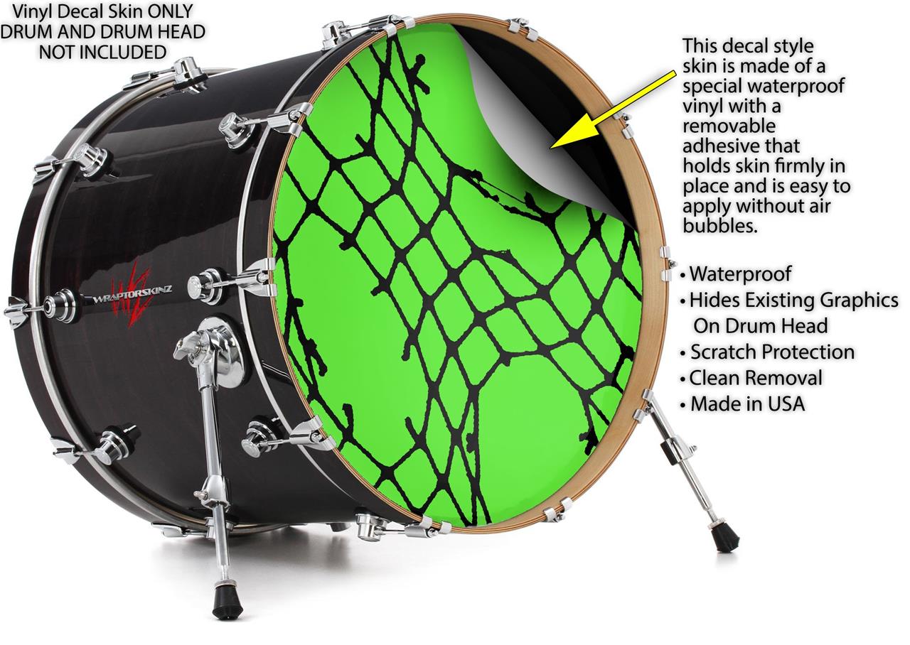 Decal Skin works with most 26" Bass Kick Drum Heads Ripped Fishnets Green - DRUM HEAD NOT INCLUDED