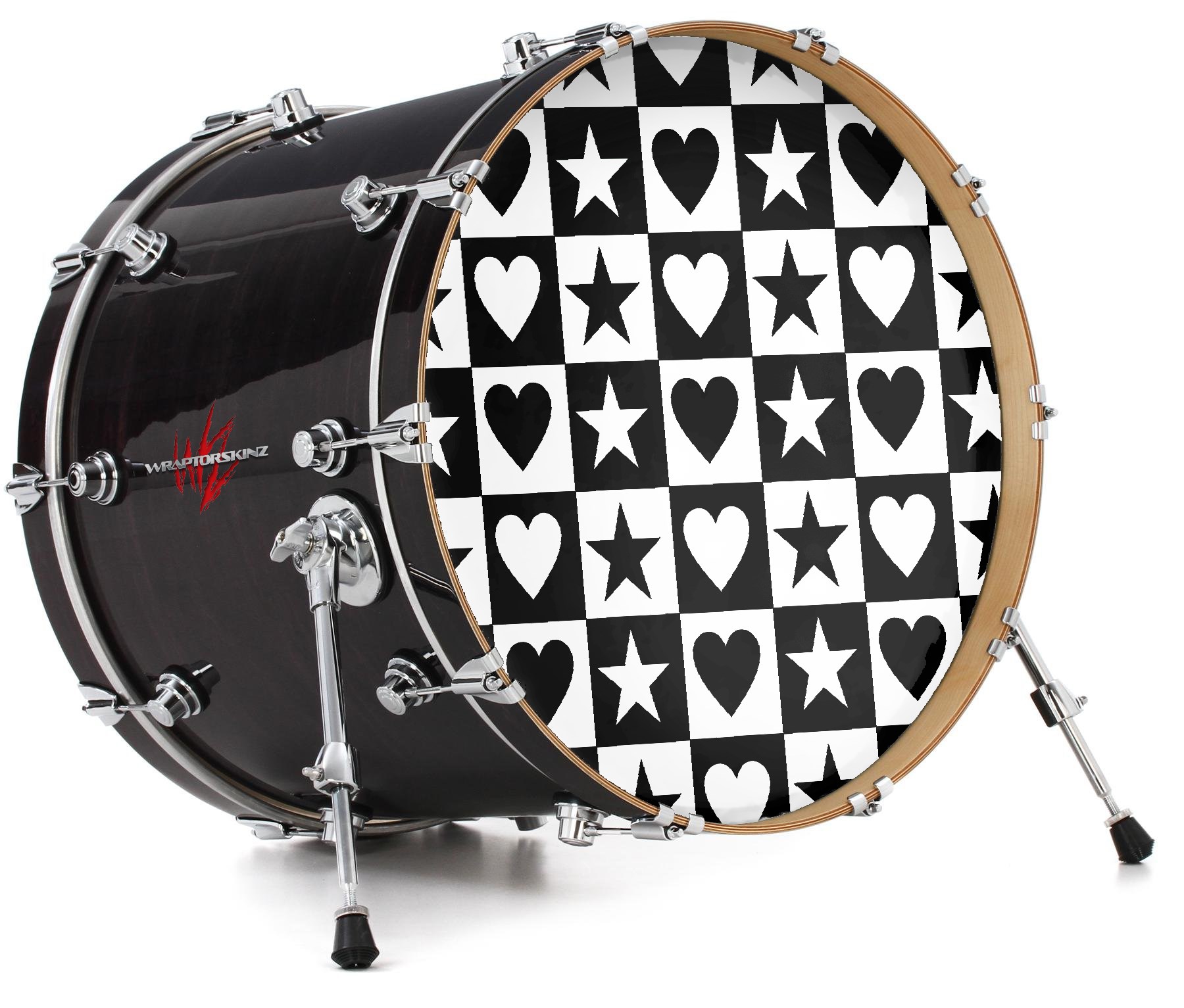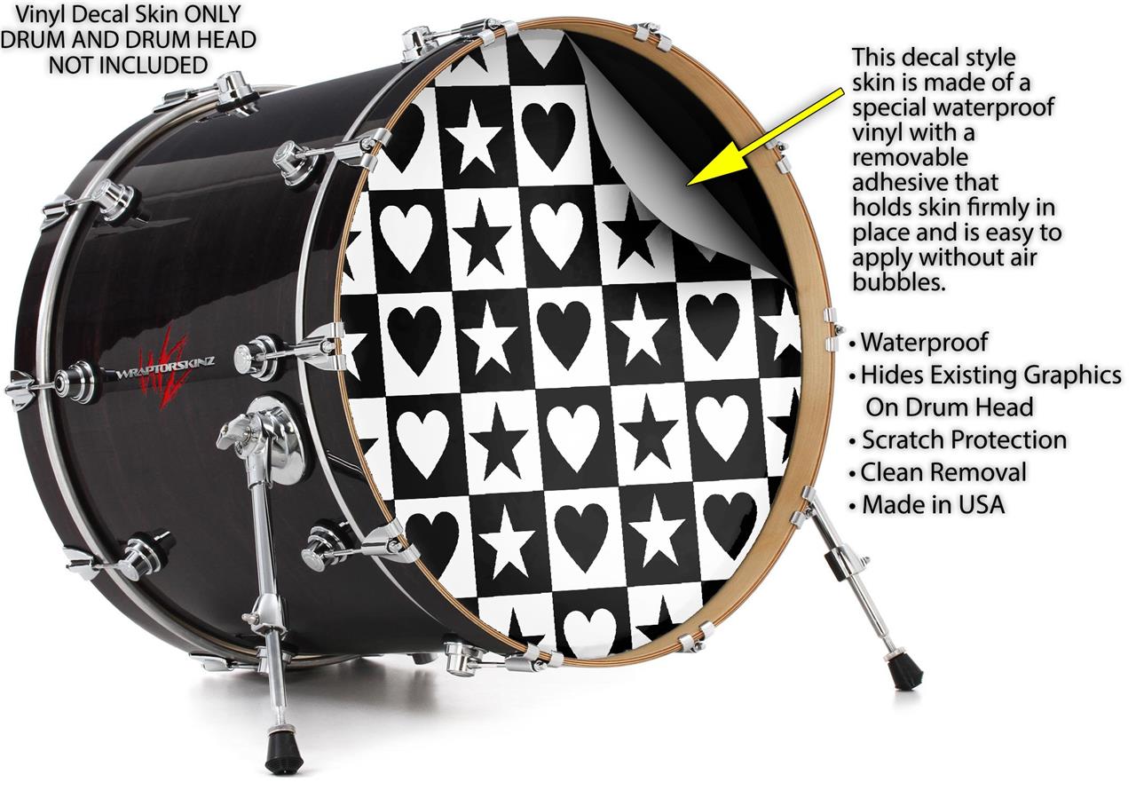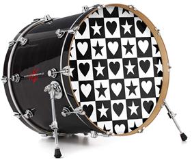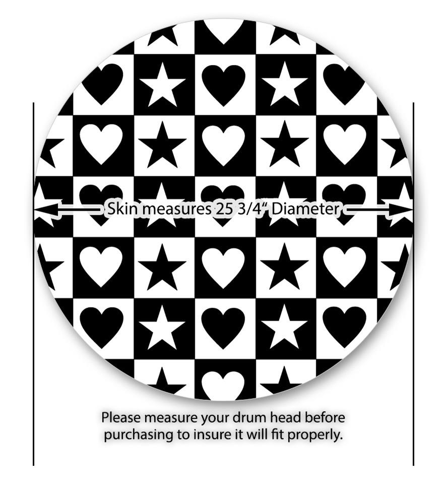 Decal Skin works with most 26" Bass Kick Drum Heads Hearts And Stars Black and White - DRUM HEAD NOT INCLUDED