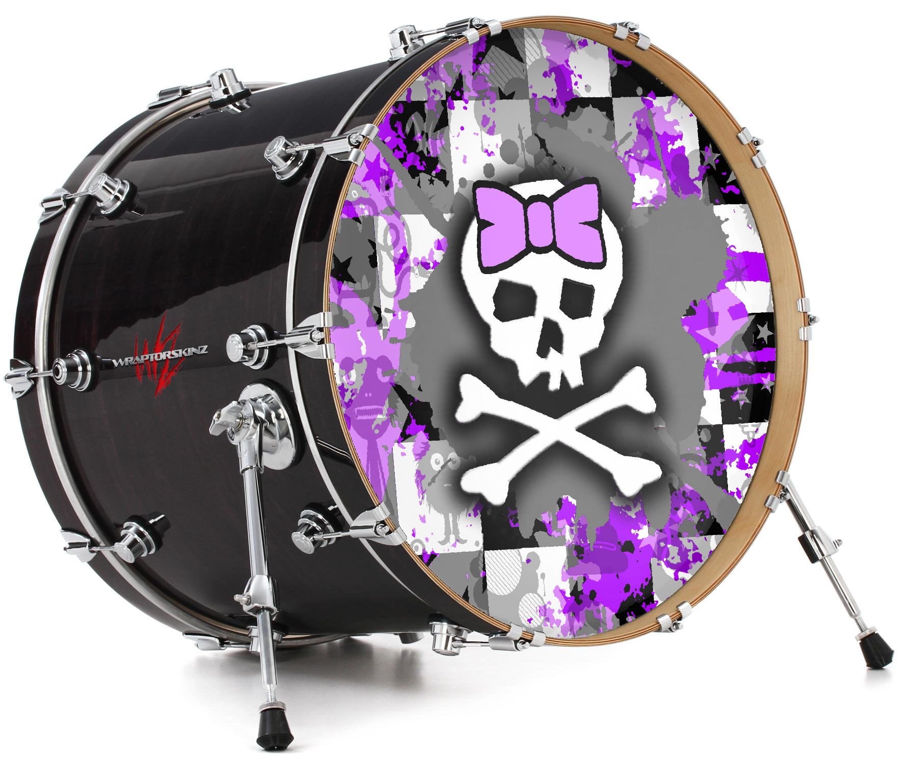 This design also available in other sizes. WraptorSkinz® skin wraps compatible with most kick drum heads. Printed using superb photo quality designs and vibrant colors printed with special fade resistant inks that last even in direct sun for years. WraptorSkinz are a composite three layer commercial grade materials vinyl. The bottom layer is a air release, grey block out removable adhesive that hides existing graphics on the drum head and is easily applied without air bubbles. The middle layer is a flexible vinyl printed with UV protected, fade resistant inks that deliver superb photo quality designs in vibrant colors. Finally, we bond a professional grade laminate over the entire skin adding a glossy protective finish.