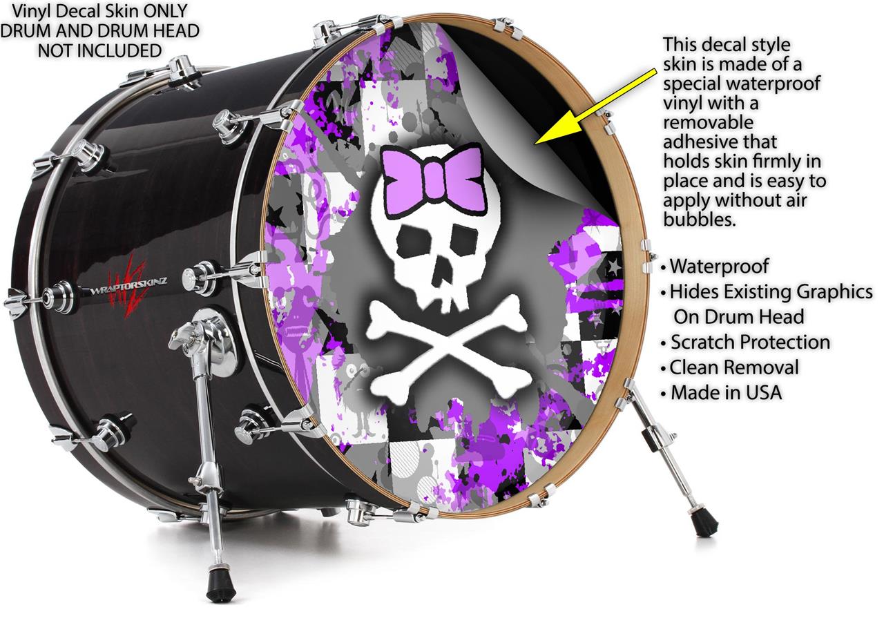 Decal Skin works with most 26" Bass Kick Drum Heads Purple Princess Skull - DRUM HEAD NOT INCLUDED