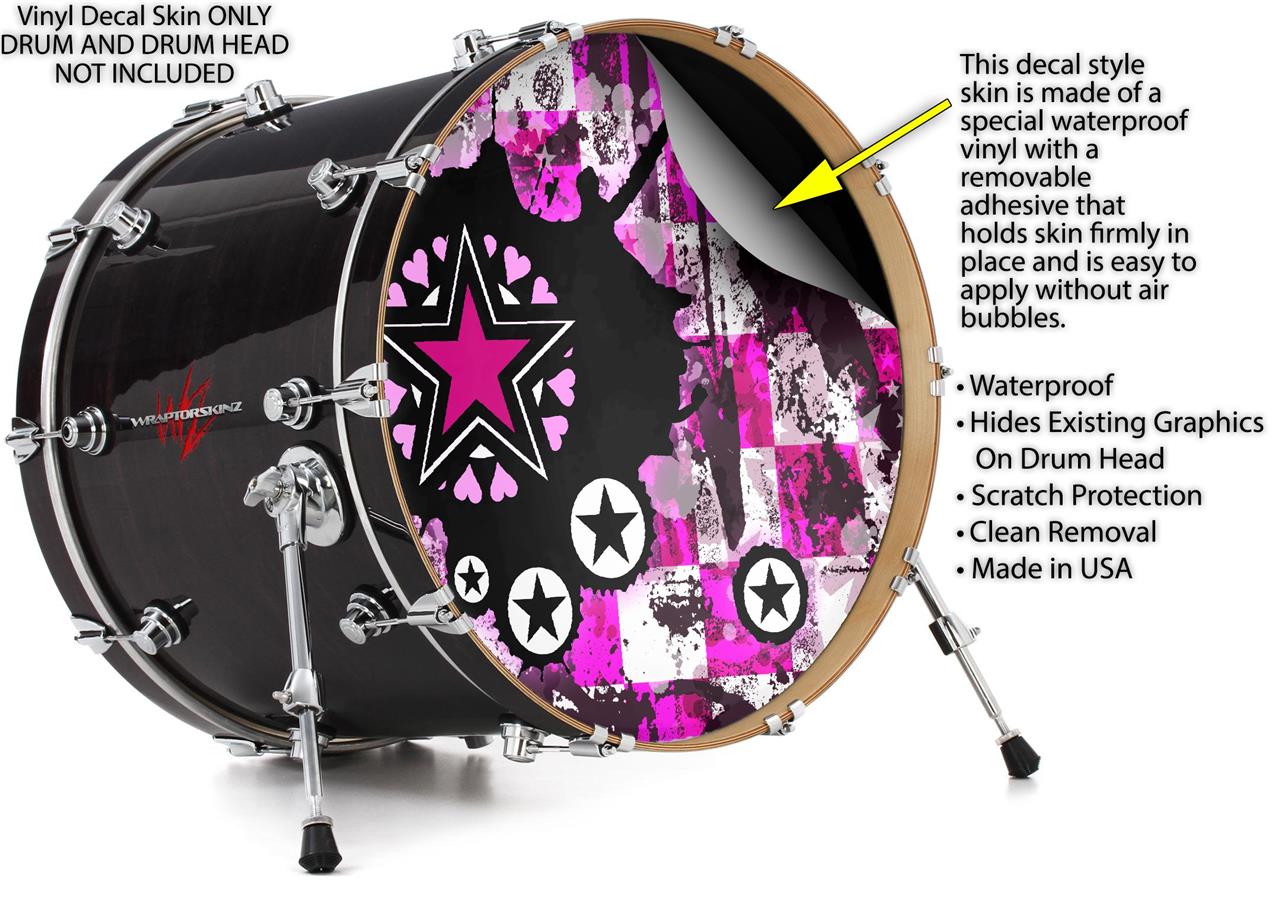 Decal Skin works with most 26" Bass Kick Drum Heads Pink Star Splatter - DRUM HEAD NOT INCLUDED