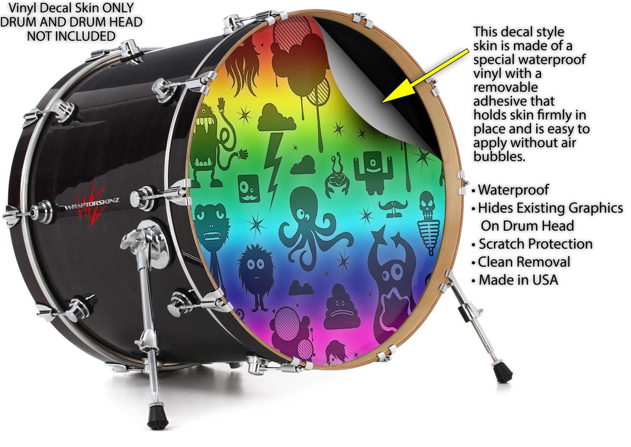 Decal Skin works with most 26" Bass Kick Drum Heads Cute Rainbow Monsters - DRUM HEAD NOT INCLUDED