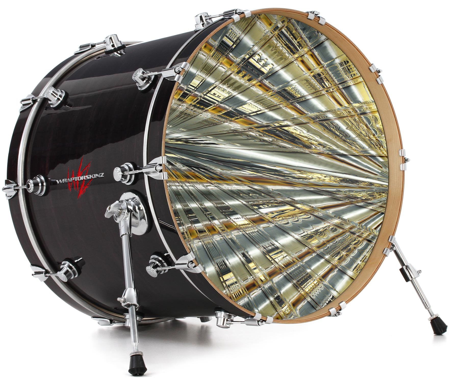 This design also available in other sizes. WraptorSkinz® skin wraps compatible with most kick drum heads. Printed using superb photo quality designs and vibrant colors printed with special fade resistant inks that last even in direct sun for years. WraptorSkinz are a composite three layer commercial grade materials vinyl. The bottom layer is a air release, grey block out removable adhesive that hides existing graphics on the drum head and is easily applied without air bubbles. The middle layer is a flexible vinyl printed with UV protected, fade resistant inks that deliver superb photo quality designs in vibrant colors. Finally, we bond a professional grade laminate over the entire skin adding a glossy protective finish.