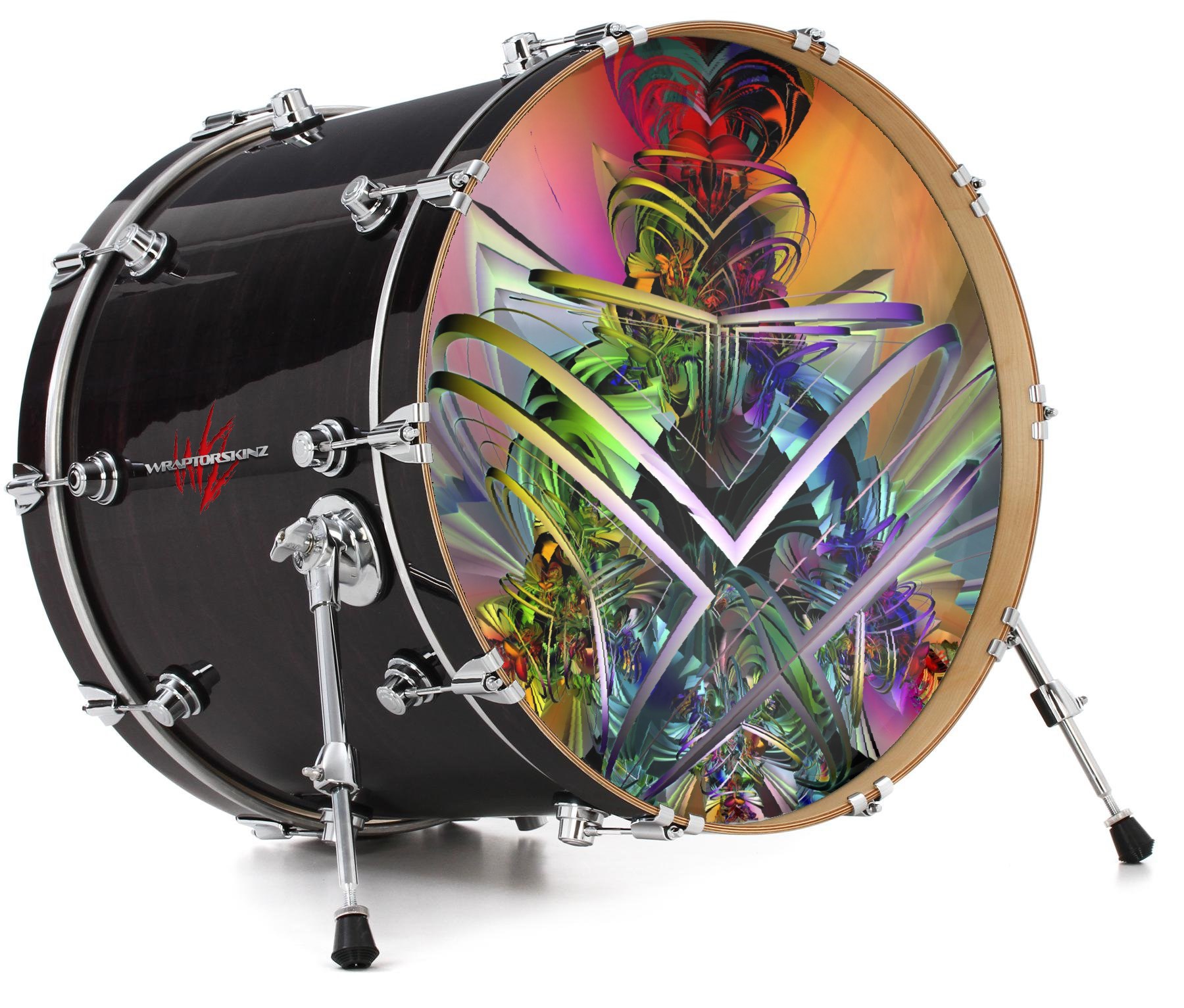 This design also available in other sizes. WraptorSkinz® skin wraps compatible with most kick drum heads. Printed using superb photo quality designs and vibrant colors printed with special fade resistant inks that last even in direct sun for years. WraptorSkinz are a composite three layer commercial grade materials vinyl. The bottom layer is a air release, grey block out removable adhesive that hides existing graphics on the drum head and is easily applied without air bubbles. The middle layer is a flexible vinyl printed with UV protected, fade resistant inks that deliver superb photo quality designs in vibrant colors. Finally, we bond a professional grade laminate over the entire skin adding a glossy protective finish.