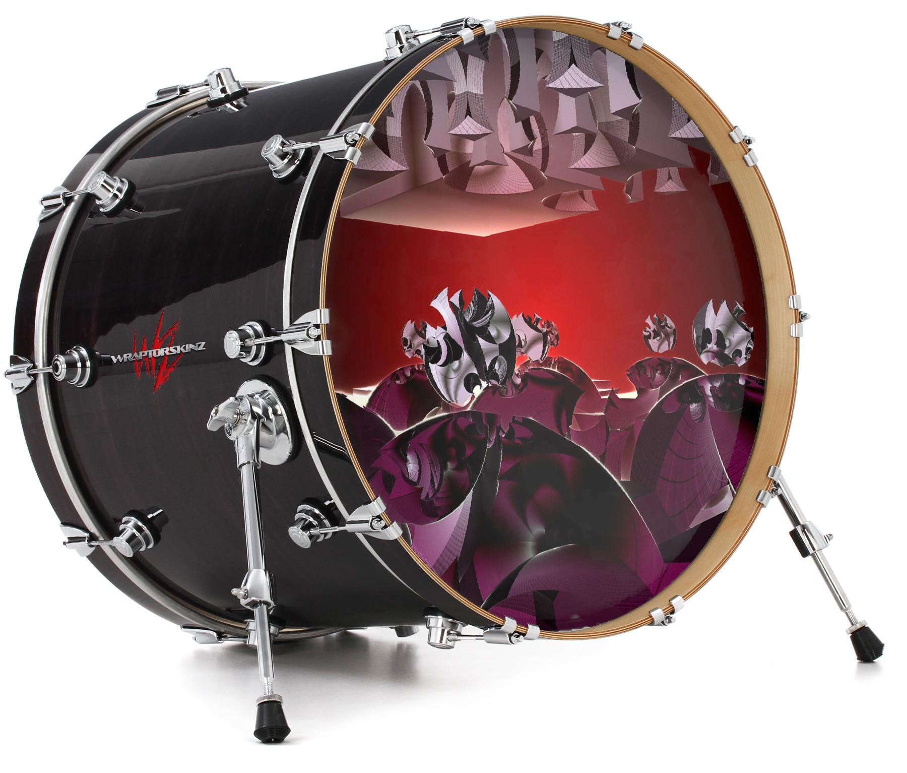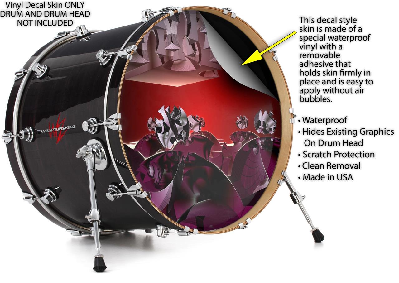 This design also available in other sizes. WraptorSkinz® skin wraps compatible with most kick drum heads. Printed using superb photo quality designs and vibrant colors printed with special fade resistant inks that last even in direct sun for years. WraptorSkinz are a composite three layer commercial grade materials vinyl. The bottom layer is a air release, grey block out removable adhesive that hides existing graphics on the drum head and is easily applied without air bubbles. The middle layer is a flexible vinyl printed with UV protected, fade resistant inks that deliver superb photo quality designs in vibrant colors. Finally, we bond a professional grade laminate over the entire skin adding a glossy protective finish.
