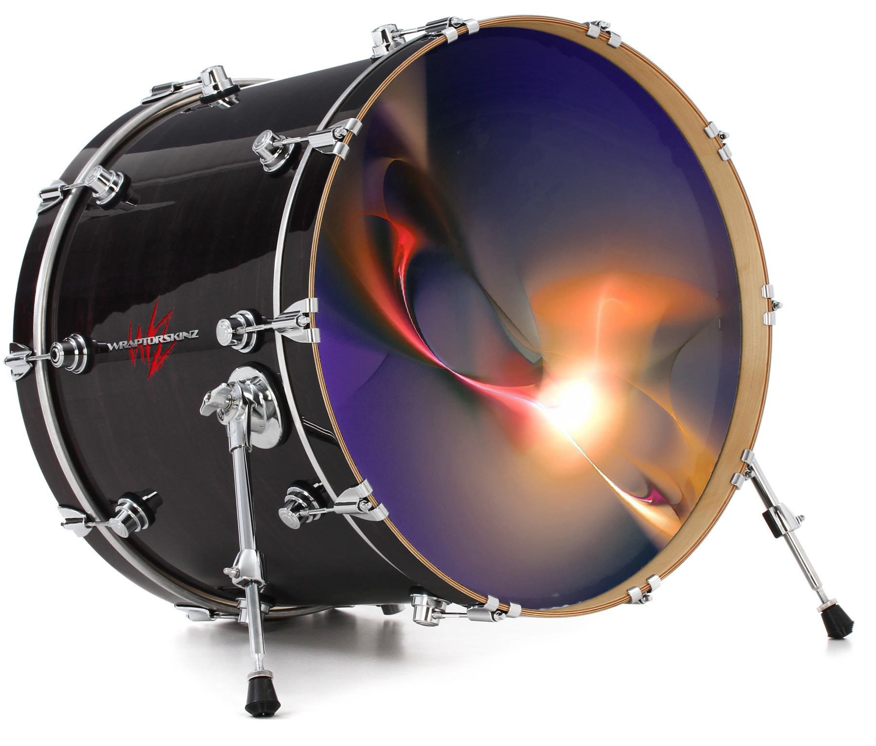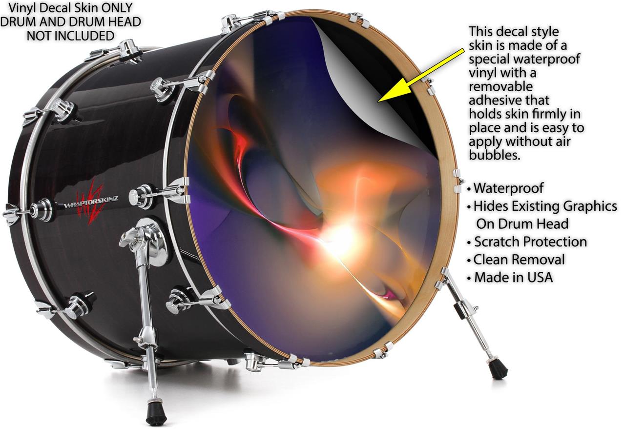 This design also available in other sizes. WraptorSkinz® skin wraps compatible with most kick drum heads. Printed using superb photo quality designs and vibrant colors printed with special fade resistant inks that last even in direct sun for years. WraptorSkinz are a composite three layer commercial grade materials vinyl. The bottom layer is a air release, grey block out removable adhesive that hides existing graphics on the drum head and is easily applied without air bubbles. The middle layer is a flexible vinyl printed with UV protected, fade resistant inks that deliver superb photo quality designs in vibrant colors. Finally, we bond a professional grade laminate over the entire skin adding a glossy protective finish.
