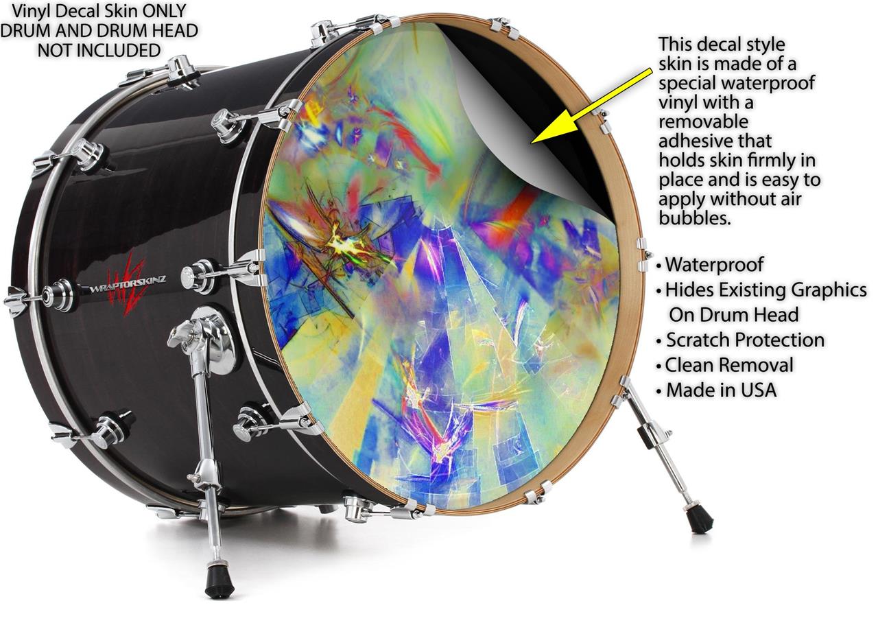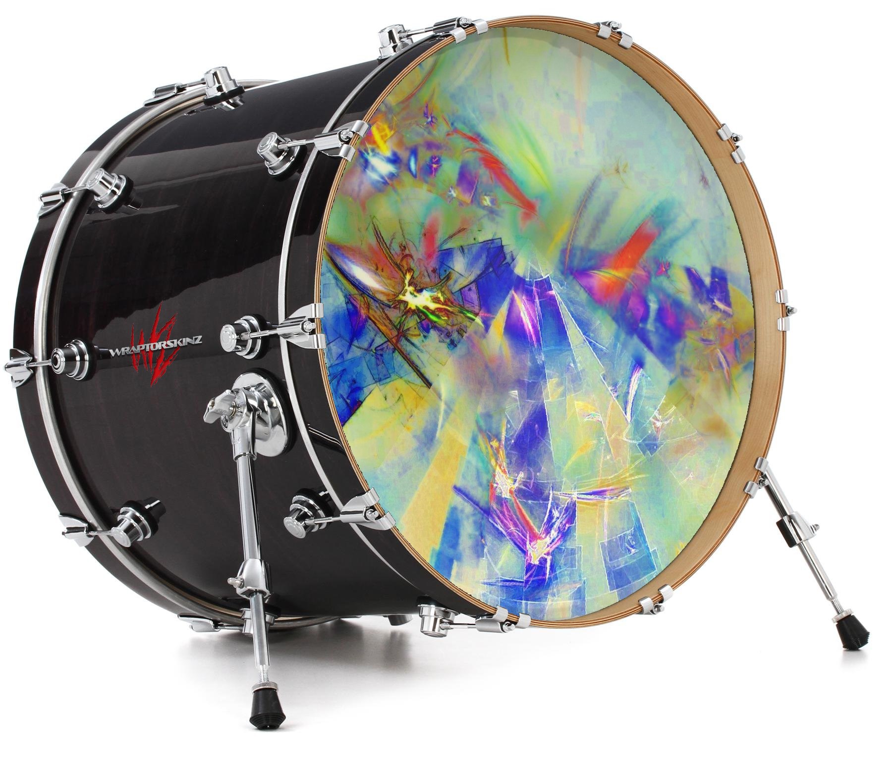 This design also available in other sizes. WraptorSkinz® skin wraps compatible with most kick drum heads. Printed using superb photo quality designs and vibrant colors printed with special fade resistant inks that last even in direct sun for years. WraptorSkinz are a composite three layer commercial grade materials vinyl. The bottom layer is a air release, grey block out removable adhesive that hides existing graphics on the drum head and is easily applied without air bubbles. The middle layer is a flexible vinyl printed with UV protected, fade resistant inks that deliver superb photo quality designs in vibrant colors. Finally, we bond a professional grade laminate over the entire skin adding a glossy protective finish.