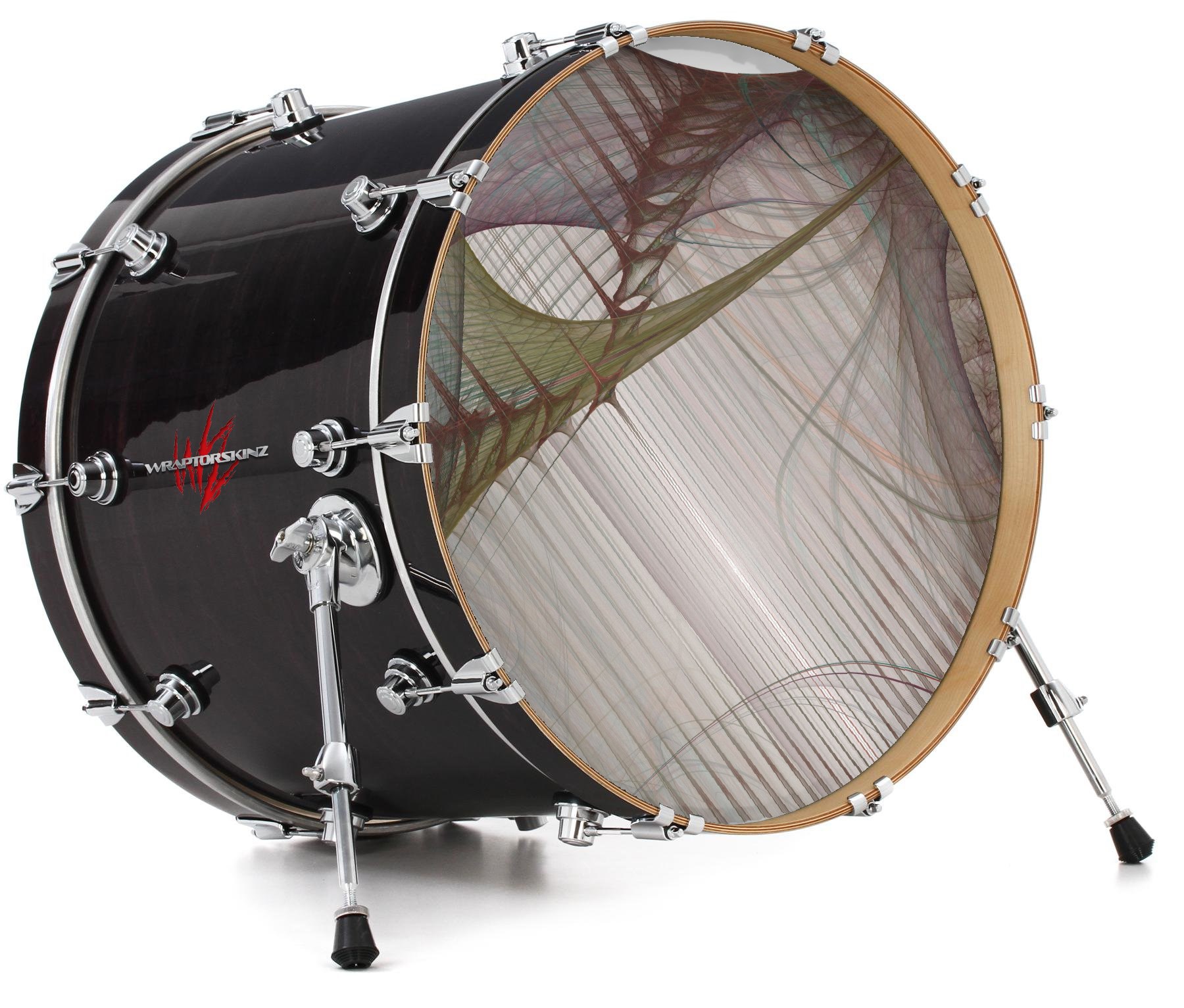 This design also available in other sizes. WraptorSkinz® skin wraps compatible with most kick drum heads. Printed using superb photo quality designs and vibrant colors printed with special fade resistant inks that last even in direct sun for years. WraptorSkinz are a composite three layer commercial grade materials vinyl. The bottom layer is a air release, grey block out removable adhesive that hides existing graphics on the drum head and is easily applied without air bubbles. The middle layer is a flexible vinyl printed with UV protected, fade resistant inks that deliver superb photo quality designs in vibrant colors. Finally, we bond a professional grade laminate over the entire skin adding a glossy protective finish.