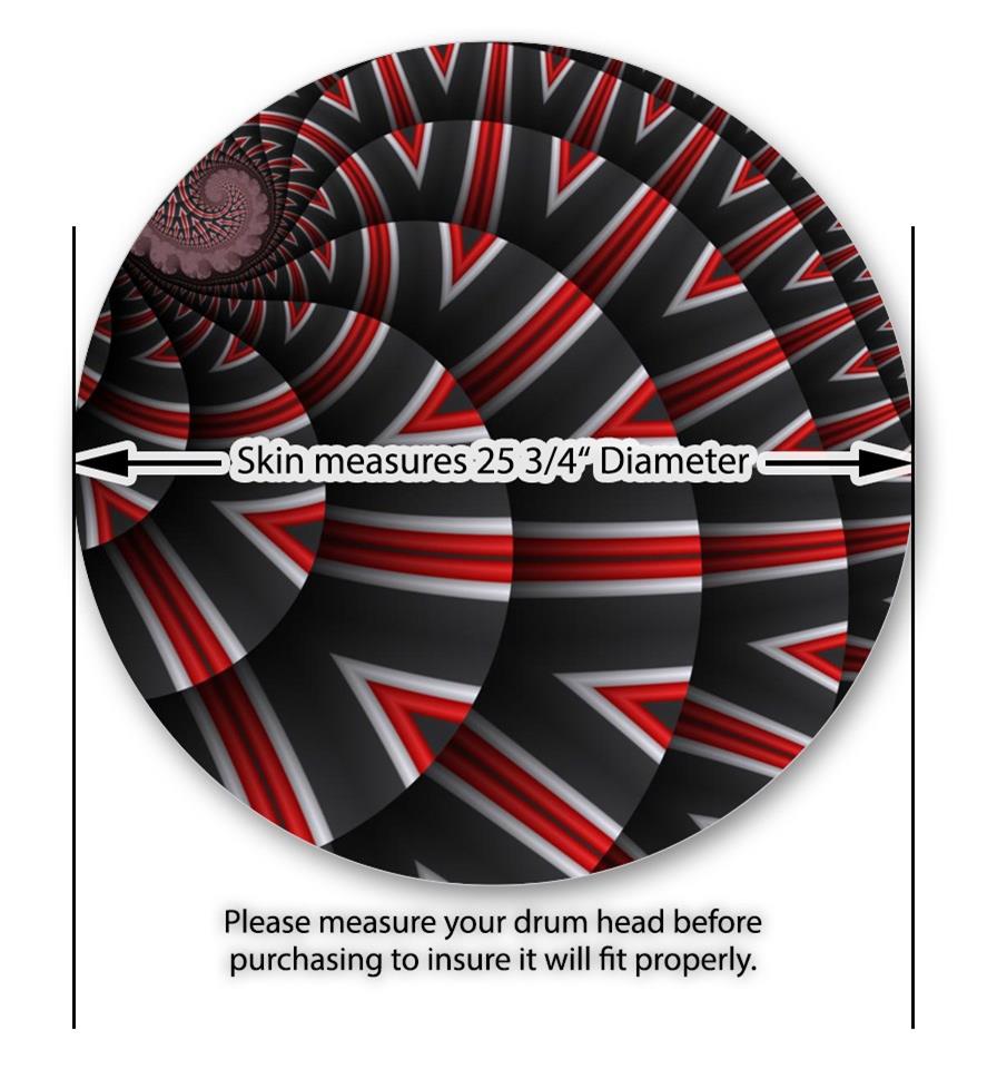 Decal Skin works with most 26" Bass Kick Drum Heads Up And Down - DRUM HEAD NOT INCLUDED
