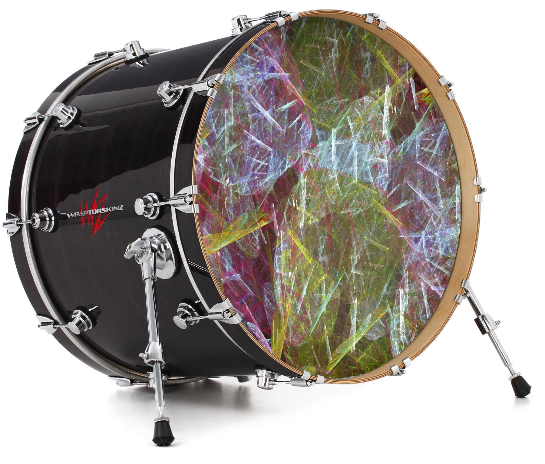 This design also available in other sizes. WraptorSkinz® skin wraps compatible with most kick drum heads. Printed using superb photo quality designs and vibrant colors printed with special fade resistant inks that last even in direct sun for years. WraptorSkinz are a composite three layer commercial grade materials vinyl. The bottom layer is a air release, grey block out removable adhesive that hides existing graphics on the drum head and is easily applied without air bubbles. The middle layer is a flexible vinyl printed with UV protected, fade resistant inks that deliver superb photo quality designs in vibrant colors. Finally, we bond a professional grade laminate over the entire skin adding a glossy protective finish.