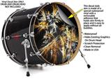 This design also available in other sizes. WraptorSkinz® skin wraps compatible with most kick drum heads. Printed using superb photo quality designs and vibrant colors printed with special fade resistant inks that last even in direct sun for years. WraptorSkinz are a composite three layer commercial grade materials vinyl. The bottom layer is a air release, grey block out removable adhesive that hides existing graphics on the drum head and is easily applied without air bubbles. The middle layer is a flexible vinyl printed with UV protected, fade resistant inks that deliver superb photo quality designs in vibrant colors. Finally, we bond a professional grade laminate over the entire skin adding a glossy protective finish.