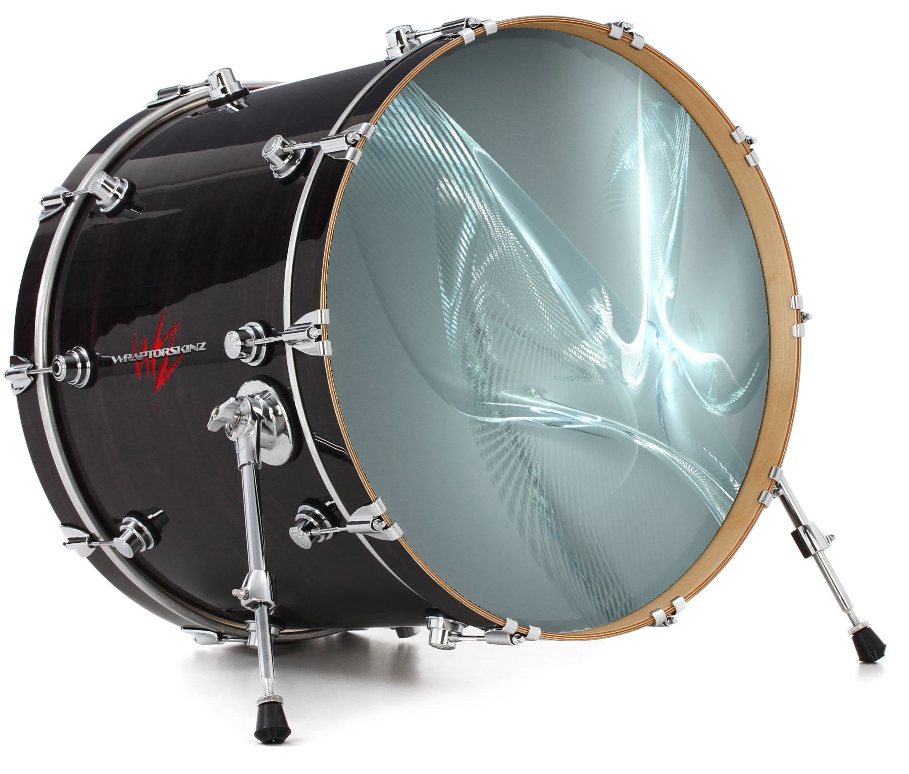 This design also available in other sizes. WraptorSkinz® skin wraps compatible with most kick drum heads. Printed using superb photo quality designs and vibrant colors printed with special fade resistant inks that last even in direct sun for years. WraptorSkinz are a composite three layer commercial grade materials vinyl. The bottom layer is a air release, grey block out removable adhesive that hides existing graphics on the drum head and is easily applied without air bubbles. The middle layer is a flexible vinyl printed with UV protected, fade resistant inks that deliver superb photo quality designs in vibrant colors. Finally, we bond a professional grade laminate over the entire skin adding a glossy protective finish.