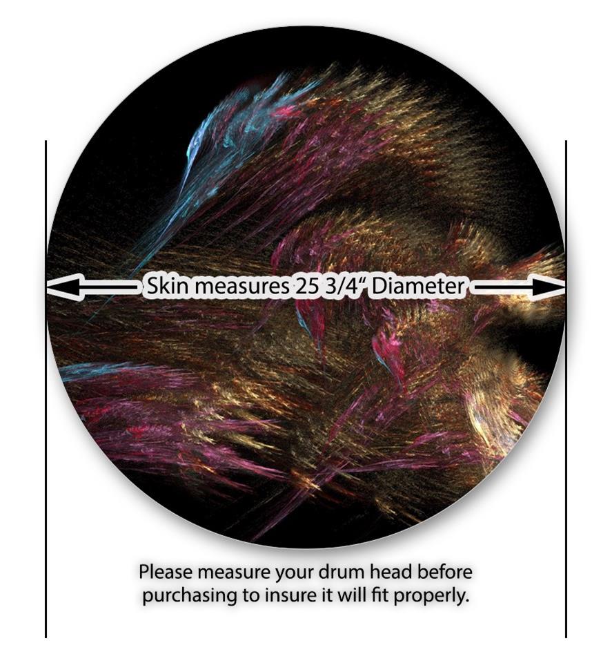 This design also available in other sizes. WraptorSkinz® skin wraps compatible with most kick drum heads. Printed using superb photo quality designs and vibrant colors printed with special fade resistant inks that last even in direct sun for years. WraptorSkinz are a composite three layer commercial grade materials vinyl. The bottom layer is a air release, grey block out removable adhesive that hides existing graphics on the drum head and is easily applied without air bubbles. The middle layer is a flexible vinyl printed with UV protected, fade resistant inks that deliver superb photo quality designs in vibrant colors. Finally, we bond a professional grade laminate over the entire skin adding a glossy protective finish.