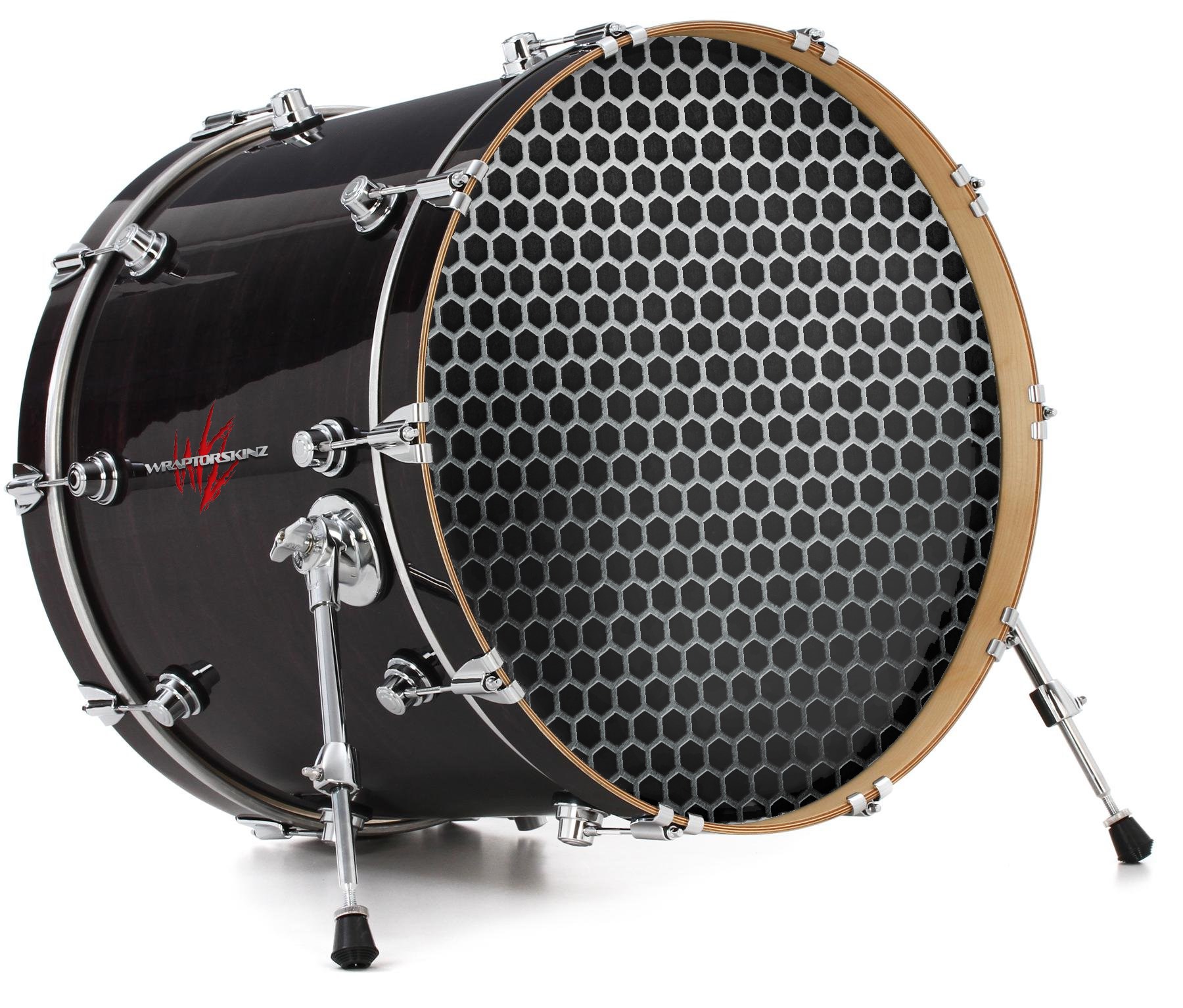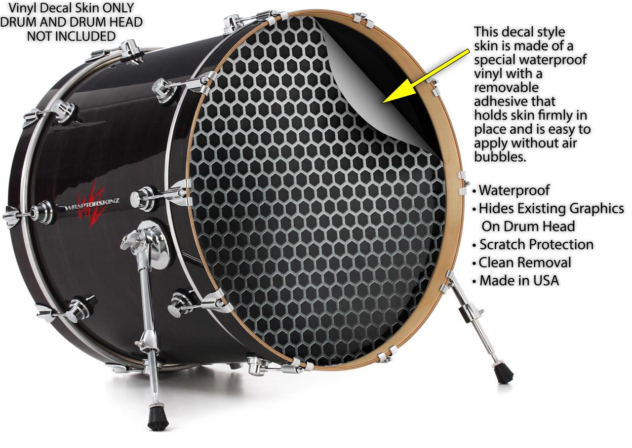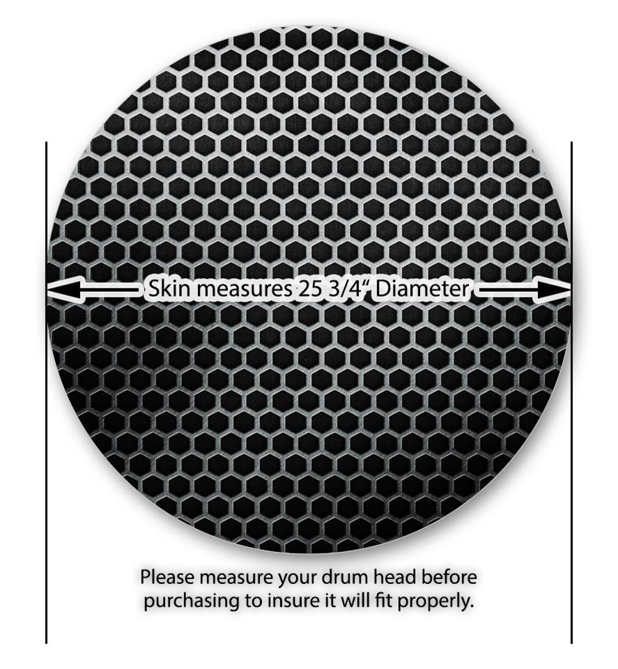 Decal Skin works with most 26" Bass Kick Drum Heads Mesh Metal Hex 02 - DRUM HEAD NOT INCLUDED