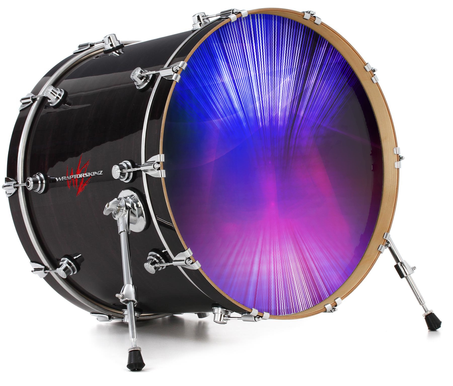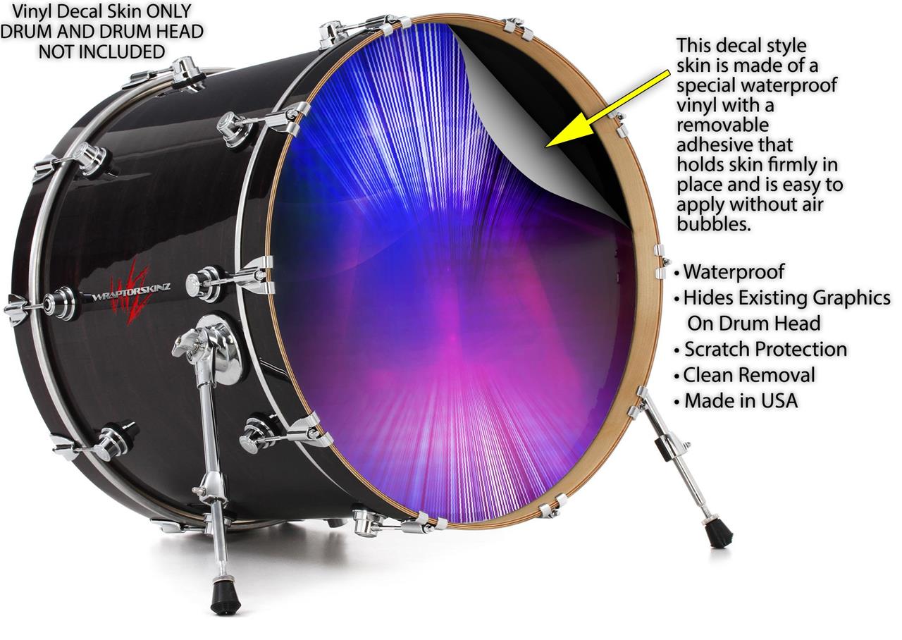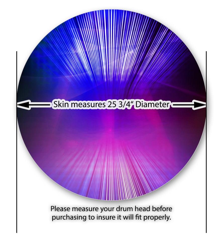 This design also available in other sizes. WraptorSkinz® skin wraps compatible with most kick drum heads. Printed using superb photo quality designs and vibrant colors printed with special fade resistant inks that last even in direct sun for years. WraptorSkinz are a composite three layer commercial grade materials vinyl. The bottom layer is a air release, grey block out removable adhesive that hides existing graphics on the drum head and is easily applied without air bubbles. The middle layer is a flexible vinyl printed with UV protected, fade resistant inks that deliver superb photo quality designs in vibrant colors. Finally, we bond a professional grade laminate over the entire skin adding a glossy protective finish.