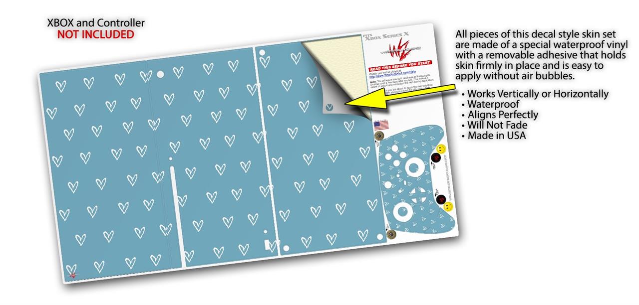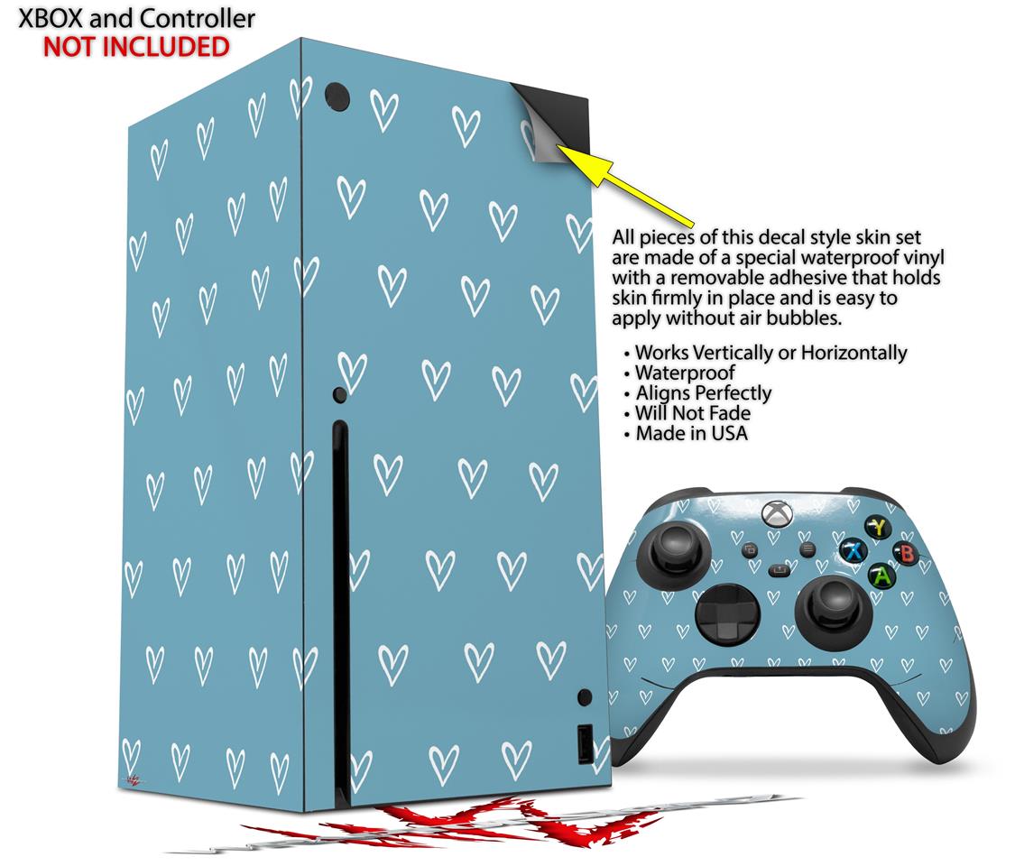 WraptorSkinz Skin Wrap compatible with the 2020 XBOX Series X Console and Controller Hearts Blue On White (XBOX NOT INCLUDED)