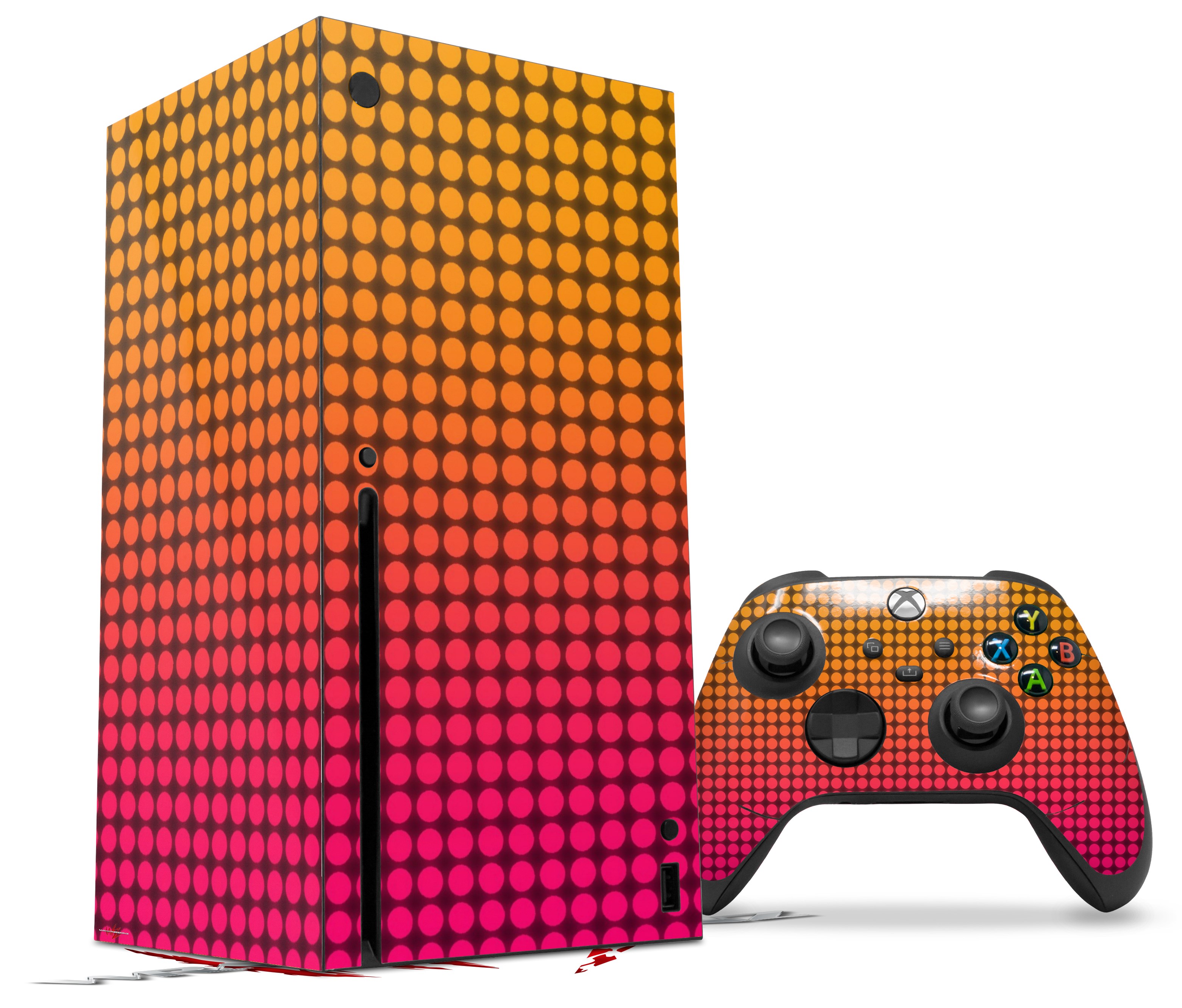 WraptorSkinz Skin Wrap compatible with the 2020 XBOX Series X Console and Controller Faded Dots Hot Pink Orange (XBOX NOT INCLUDED)