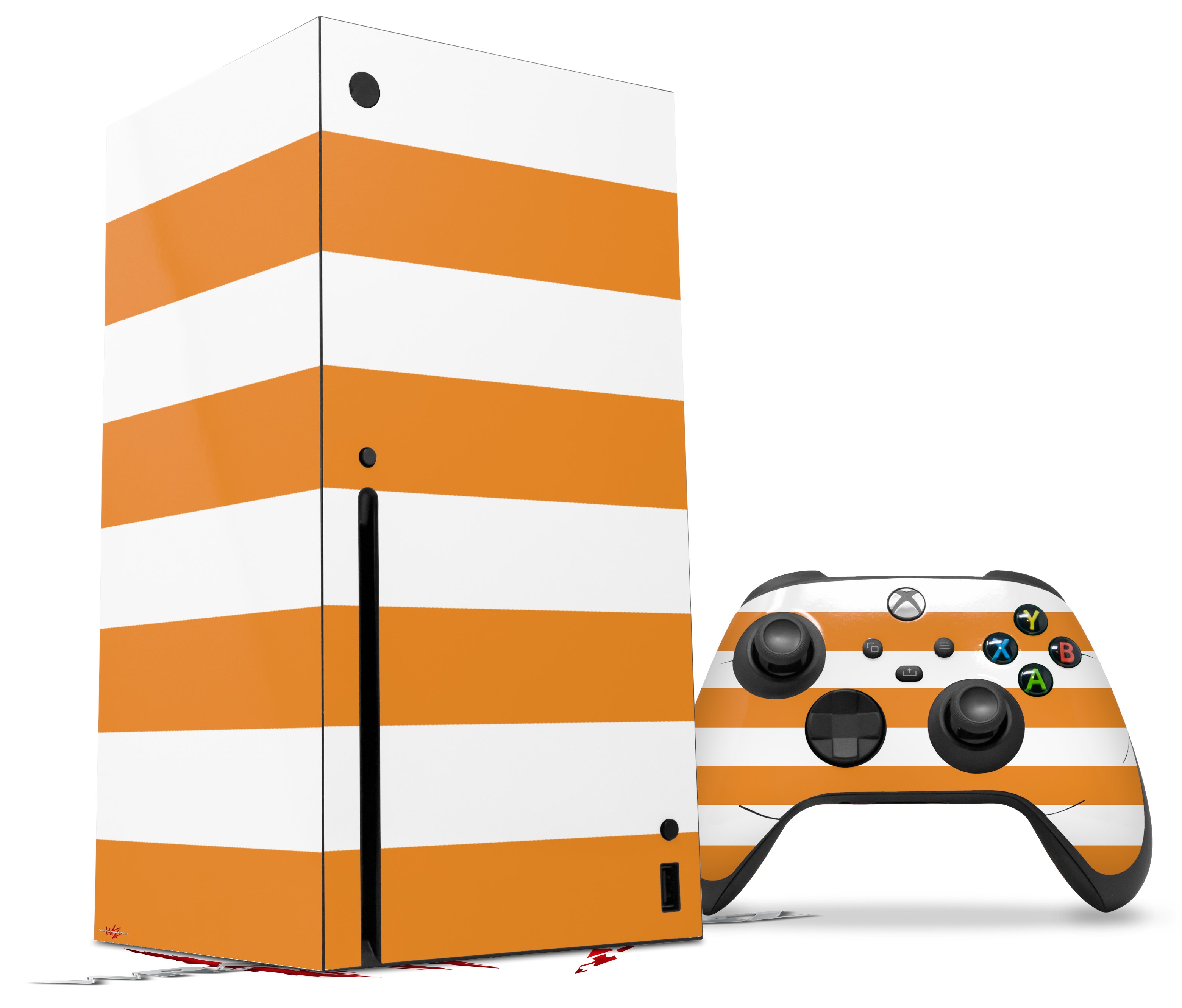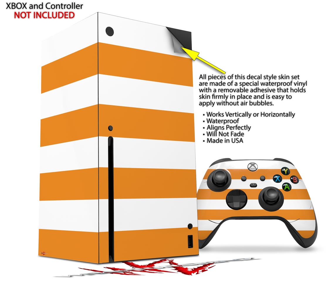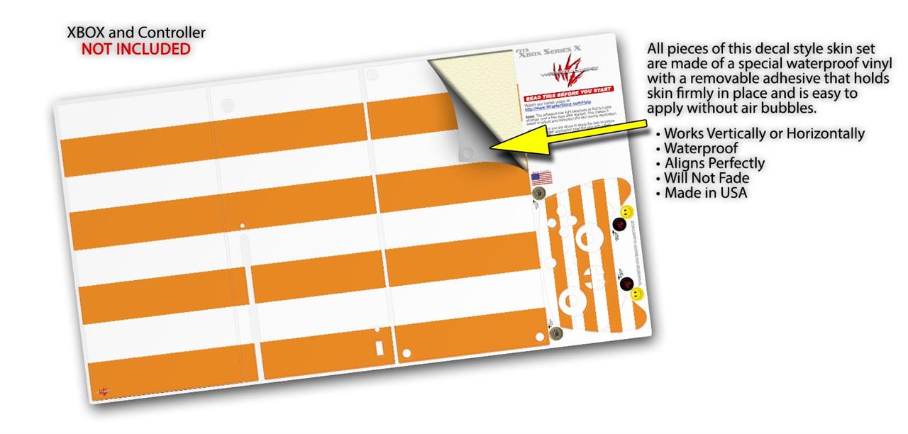 WraptorSkinz Skin Wrap compatible with the 2020 XBOX Series X Console and Controller Psycho Stripes Orange and White (XBOX NOT INCLUDED)