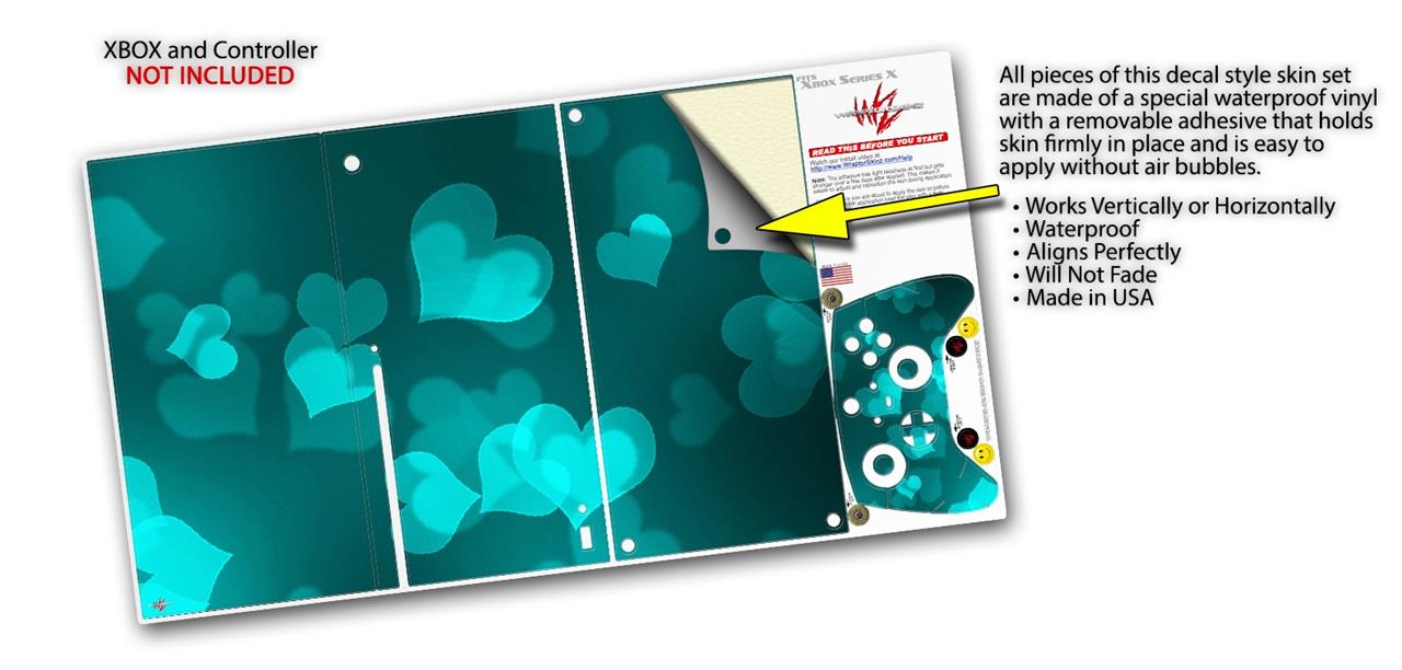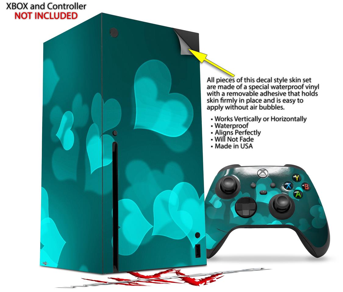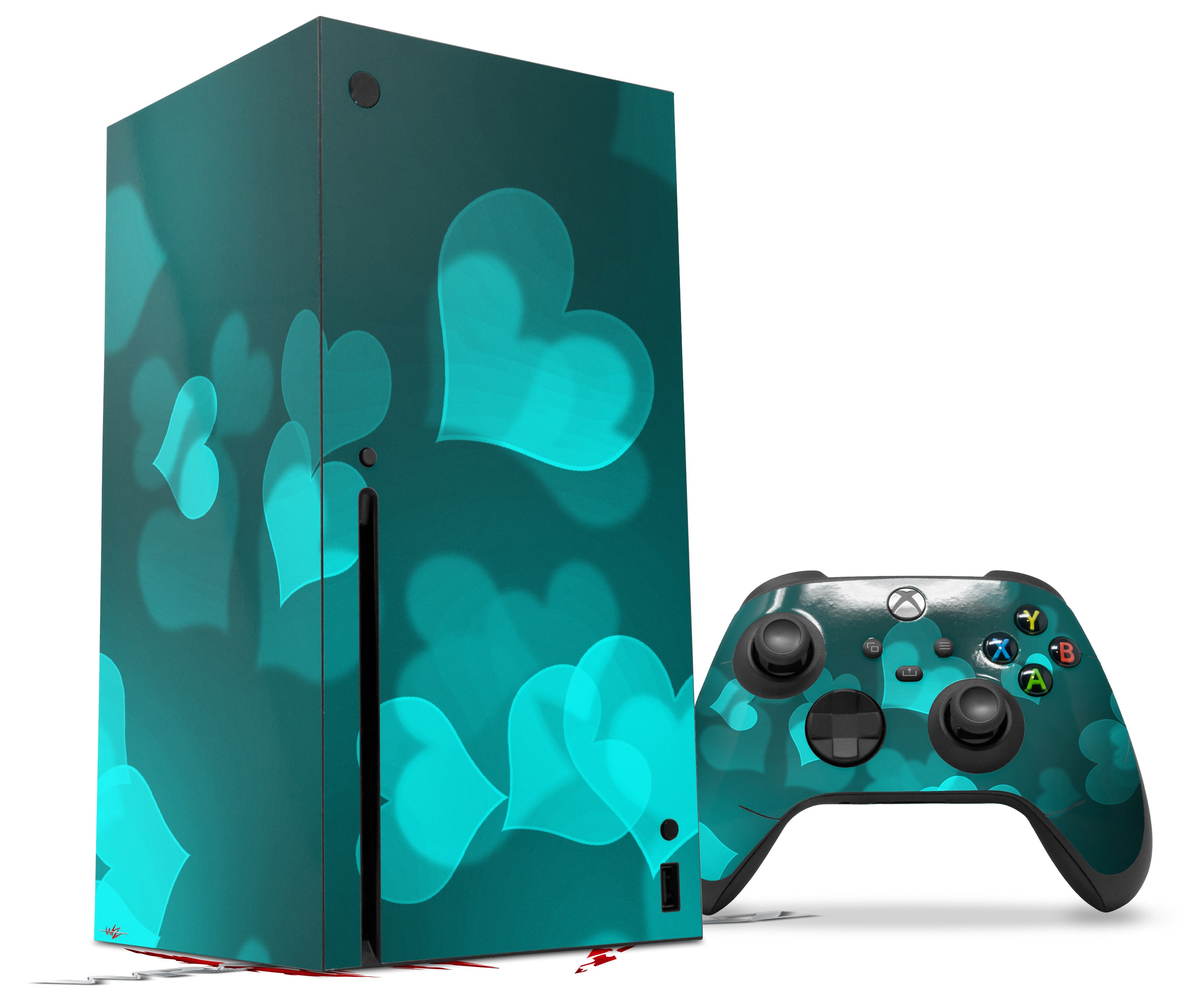 WraptorSkinz Skin Wrap compatible with the 2020 XBOX Series X Console and Controller Bokeh Hearts Neon Teal (XBOX NOT INCLUDED)
