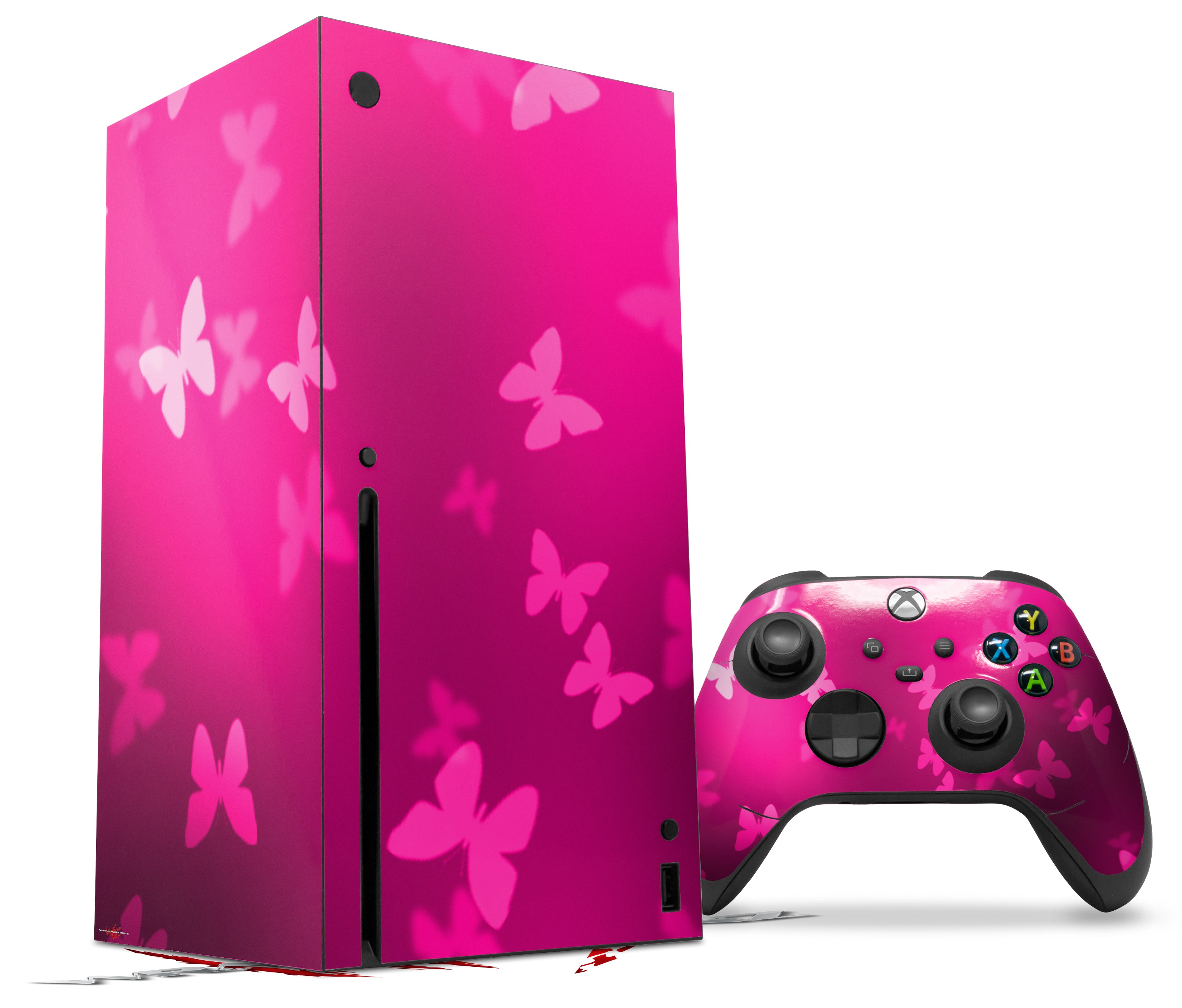 WraptorSkinz Skin Wrap compatible with the 2020 XBOX Series X Console and Controller Bokeh Butterflies Hot Pink (XBOX NOT INCLUDED)