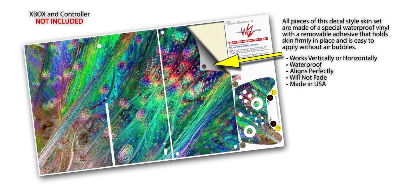WraptorSkinz® skin wraps for the XBOX Series X gaming console and controller reelase November 2020 are printed using superb photo quality designs and vibrant colors printed with special fade resistant inks that last even in direct sun for years. WraptorSkinz are a composite of two layers of commercial grade materials. The bottom layer is a soft, flexible vinyl with a special removable adhesive that is easily positioned, applied without air bubbles. Next we print the bottom layer with UV protected, fade resistant inks that deliver superb photo quality designs in vibrant colors. Last, we bond a professional grade laminate over the entire skin adding a glossy protective finish. This product is not affiliated with or endorsed by Microsoft or the XBOX brand.