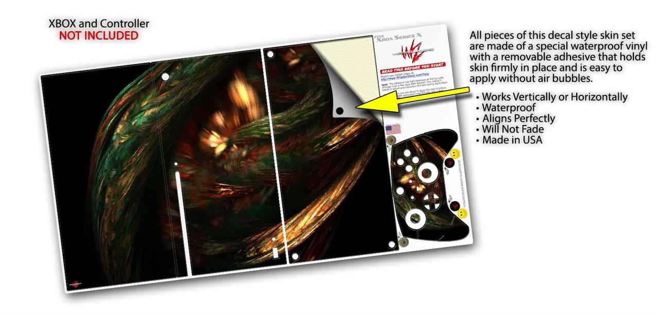 WraptorSkinz® skin wraps for the XBOX Series X gaming console and controller reelase November 2020 are printed using superb photo quality designs and vibrant colors printed with special fade resistant inks that last even in direct sun for years. WraptorSkinz are a composite of two layers of commercial grade materials. The bottom layer is a soft, flexible vinyl with a special removable adhesive that is easily positioned, applied without air bubbles. Next we print the bottom layer with UV protected, fade resistant inks that deliver superb photo quality designs in vibrant colors. Last, we bond a professional grade laminate over the entire skin adding a glossy protective finish. This product is not affiliated with or endorsed by Microsoft or the XBOX brand.