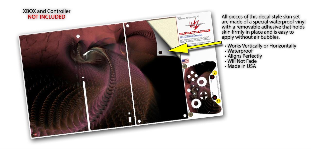 WraptorSkinz® skin wraps for the XBOX Series X gaming console and controller reelase November 2020 are printed using superb photo quality designs and vibrant colors printed with special fade resistant inks that last even in direct sun for years. WraptorSkinz are a composite of two layers of commercial grade materials. The bottom layer is a soft, flexible vinyl with a special removable adhesive that is easily positioned, applied without air bubbles. Next we print the bottom layer with UV protected, fade resistant inks that deliver superb photo quality designs in vibrant colors. Last, we bond a professional grade laminate over the entire skin adding a glossy protective finish. This product is not affiliated with or endorsed by Microsoft or the XBOX brand.