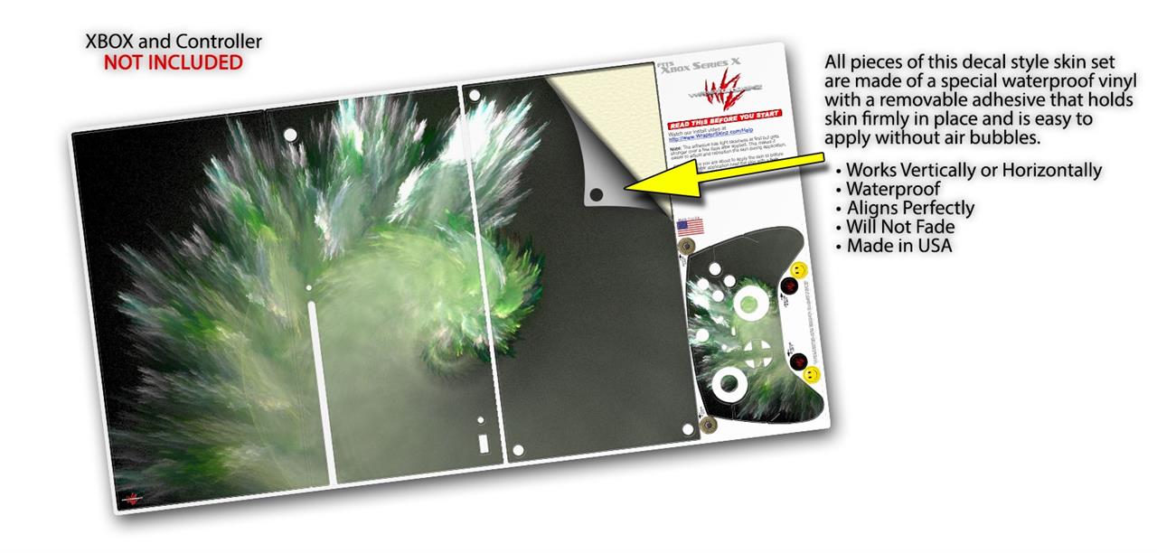 WraptorSkinz® skin wraps for the XBOX Series X gaming console and controller reelase November 2020 are printed using superb photo quality designs and vibrant colors printed with special fade resistant inks that last even in direct sun for years. WraptorSkinz are a composite of two layers of commercial grade materials. The bottom layer is a soft, flexible vinyl with a special removable adhesive that is easily positioned, applied without air bubbles. Next we print the bottom layer with UV protected, fade resistant inks that deliver superb photo quality designs in vibrant colors. Last, we bond a professional grade laminate over the entire skin adding a glossy protective finish. This product is not affiliated with or endorsed by Microsoft or the XBOX brand.