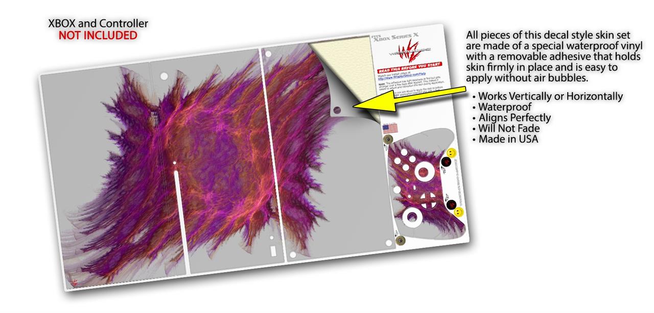 WraptorSkinz® skin wraps for the XBOX Series X gaming console and controller reelase November 2020 are printed using superb photo quality designs and vibrant colors printed with special fade resistant inks that last even in direct sun for years. WraptorSkinz are a composite of two layers of commercial grade materials. The bottom layer is a soft, flexible vinyl with a special removable adhesive that is easily positioned, applied without air bubbles. Next we print the bottom layer with UV protected, fade resistant inks that deliver superb photo quality designs in vibrant colors. Last, we bond a professional grade laminate over the entire skin adding a glossy protective finish. This product is not affiliated with or endorsed by Microsoft or the XBOX brand.