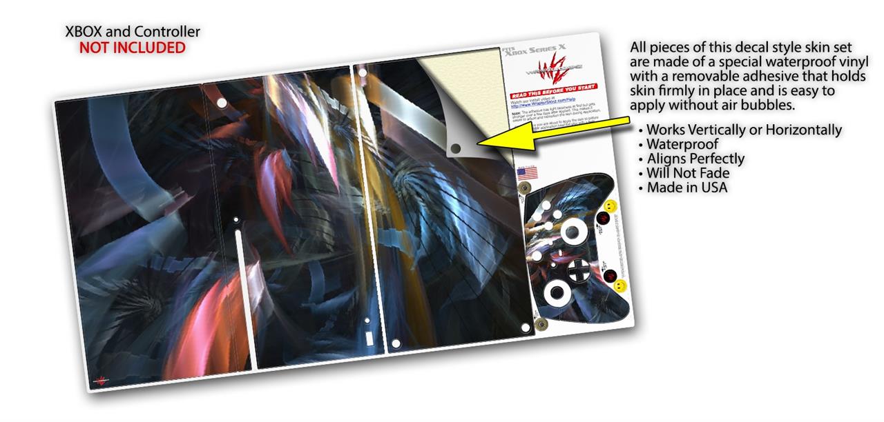 WraptorSkinz® skin wraps for the XBOX Series X gaming console and controller reelase November 2020 are printed using superb photo quality designs and vibrant colors printed with special fade resistant inks that last even in direct sun for years. WraptorSkinz are a composite of two layers of commercial grade materials. The bottom layer is a soft, flexible vinyl with a special removable adhesive that is easily positioned, applied without air bubbles. Next we print the bottom layer with UV protected, fade resistant inks that deliver superb photo quality designs in vibrant colors. Last, we bond a professional grade laminate over the entire skin adding a glossy protective finish. This product is not affiliated with or endorsed by Microsoft or the XBOX brand.
