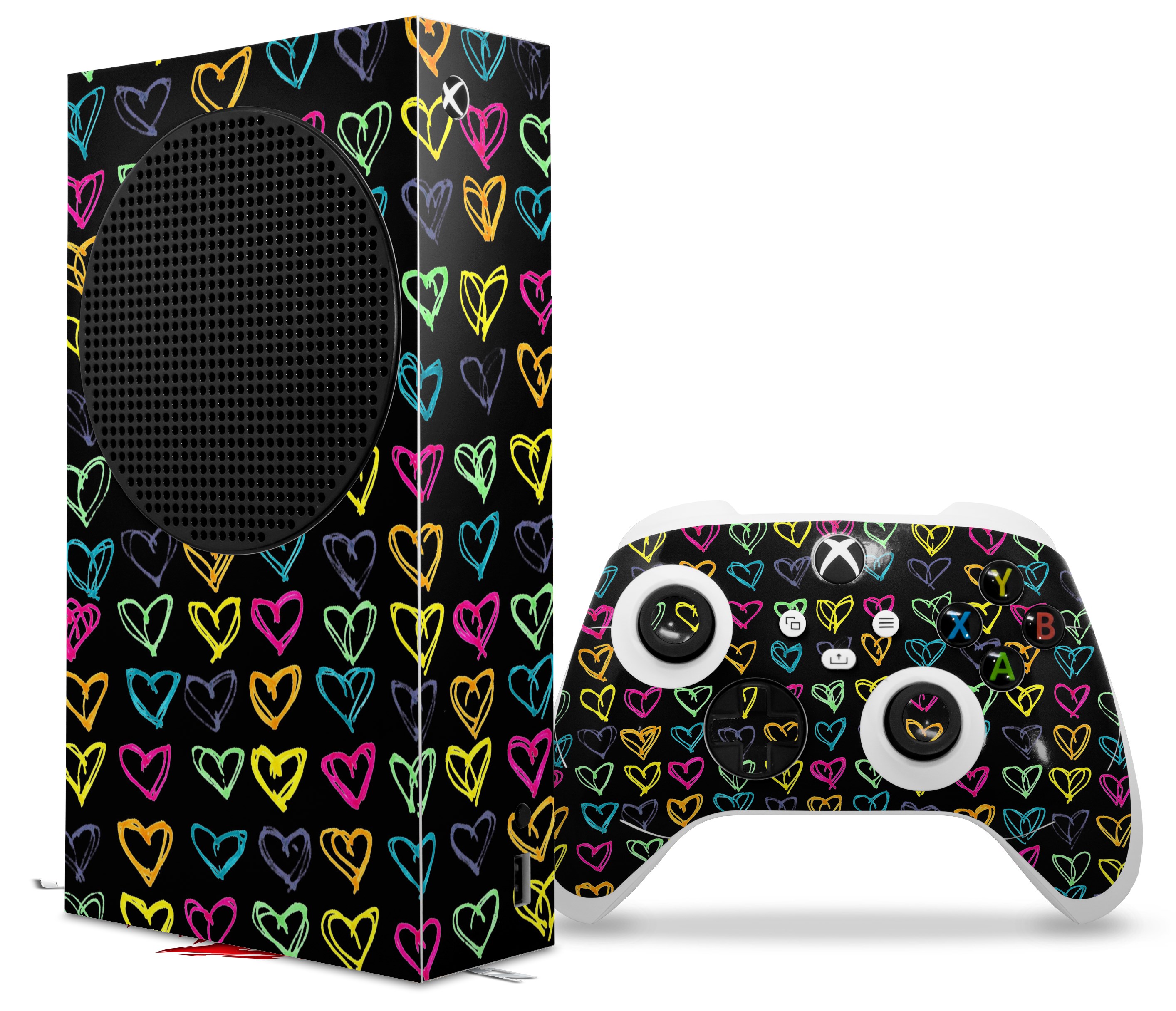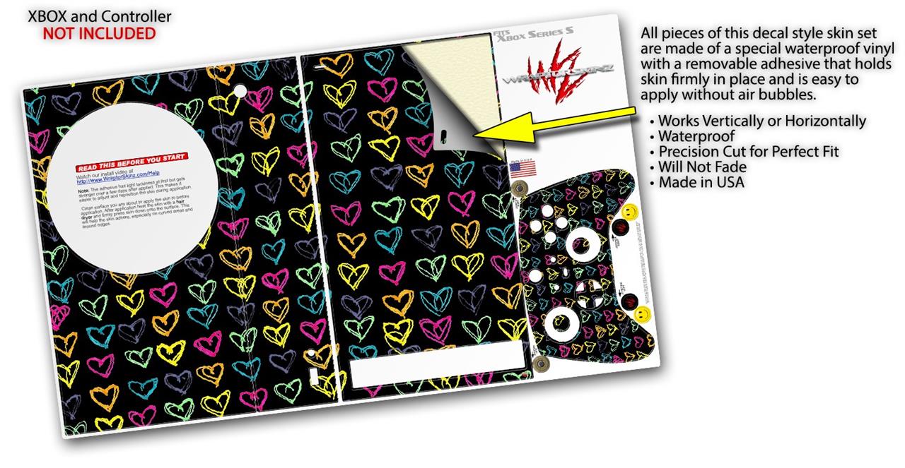WraptorSkinz Skin Wrap compatible with the 2020 XBOX Series S Console and Controller Kearas Hearts Black (XBOX NOT INCLUDED)