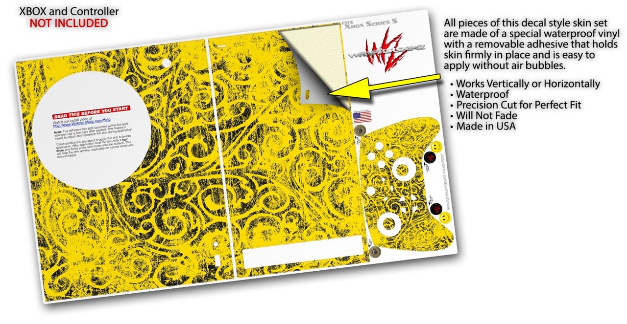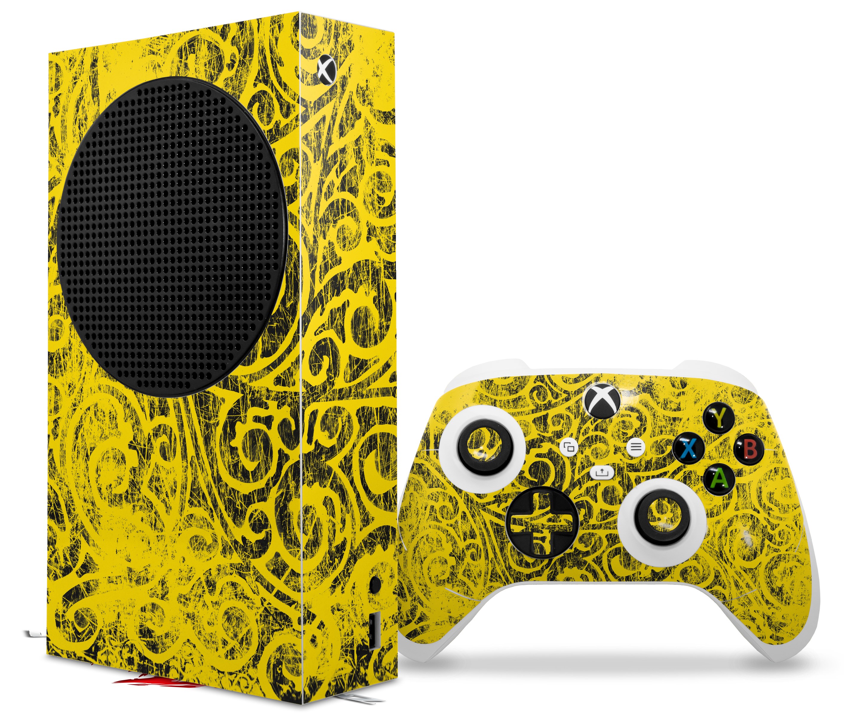 WraptorSkinz Skin Wrap compatible with the 2020 XBOX Series S Console and Controller Folder Doodles Yellow (XBOX NOT INCLUDED)