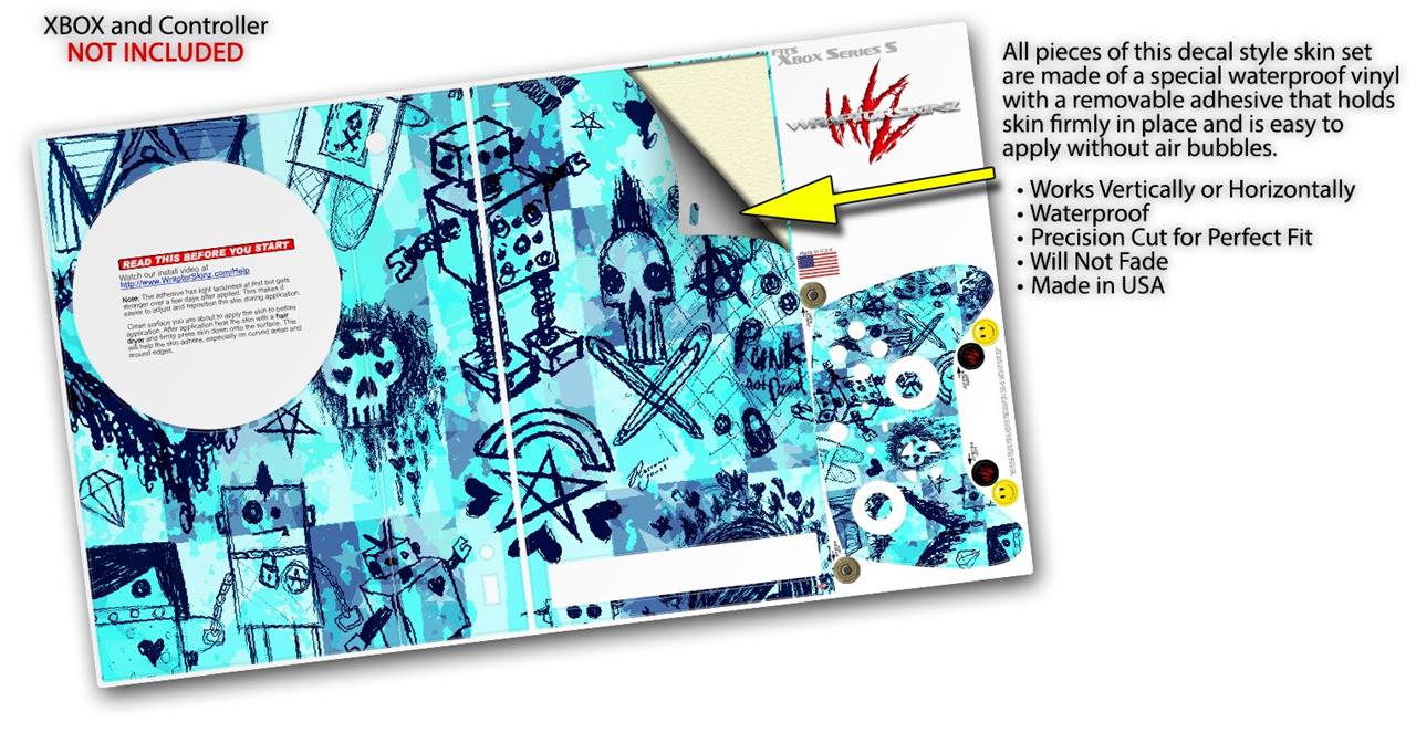 WraptorSkinz Skin Wrap compatible with the 2020 XBOX Series S Console and Controller Scene Kid Sketches Blue (XBOX NOT INCLUDED)