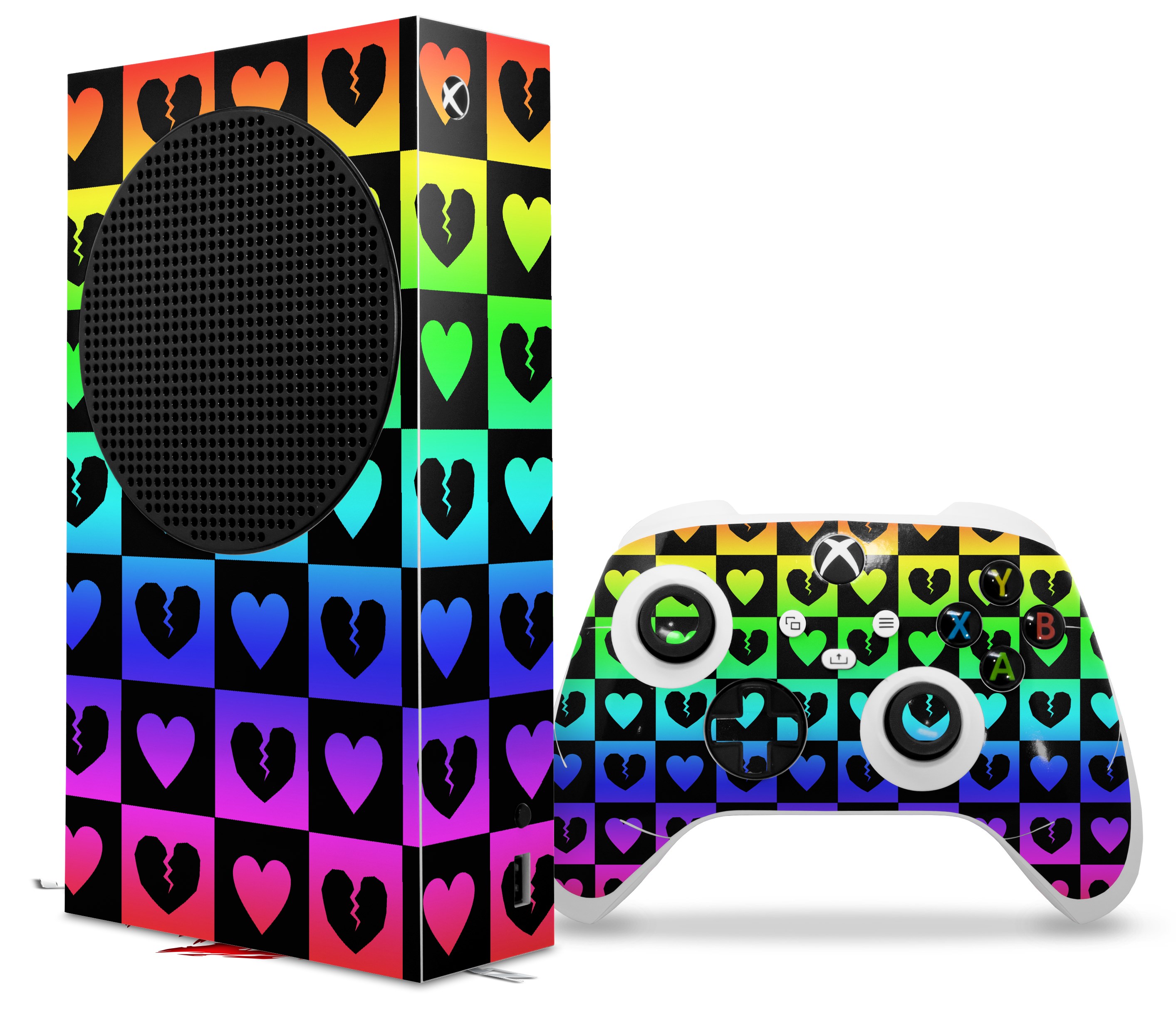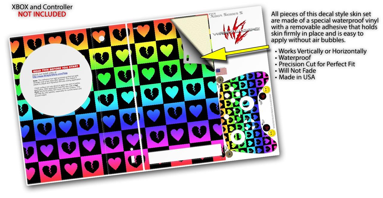 WraptorSkinz Skin Wrap compatible with the 2020 XBOX Series S Console and Controller Love Heart Checkers Rainbow (XBOX NOT INCLUDED)