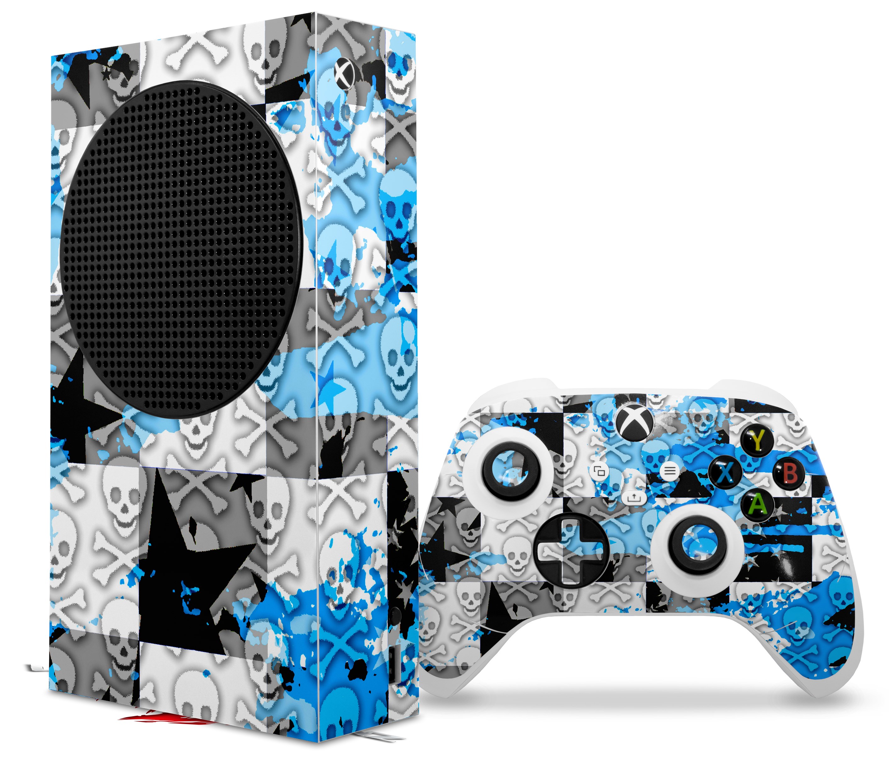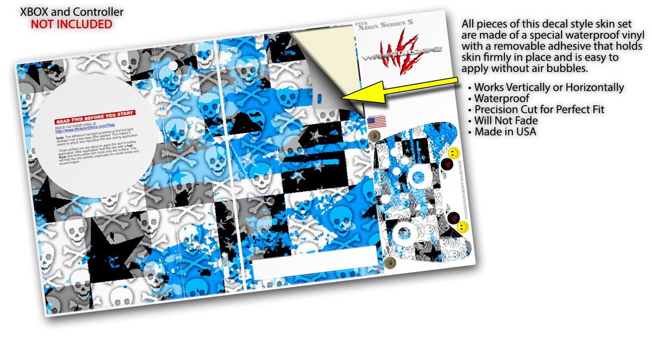 WraptorSkinz Skin Wrap compatible with the 2020 XBOX Series S Console and Controller Checker Skull Splatter Blue (XBOX NOT INCLUDED)