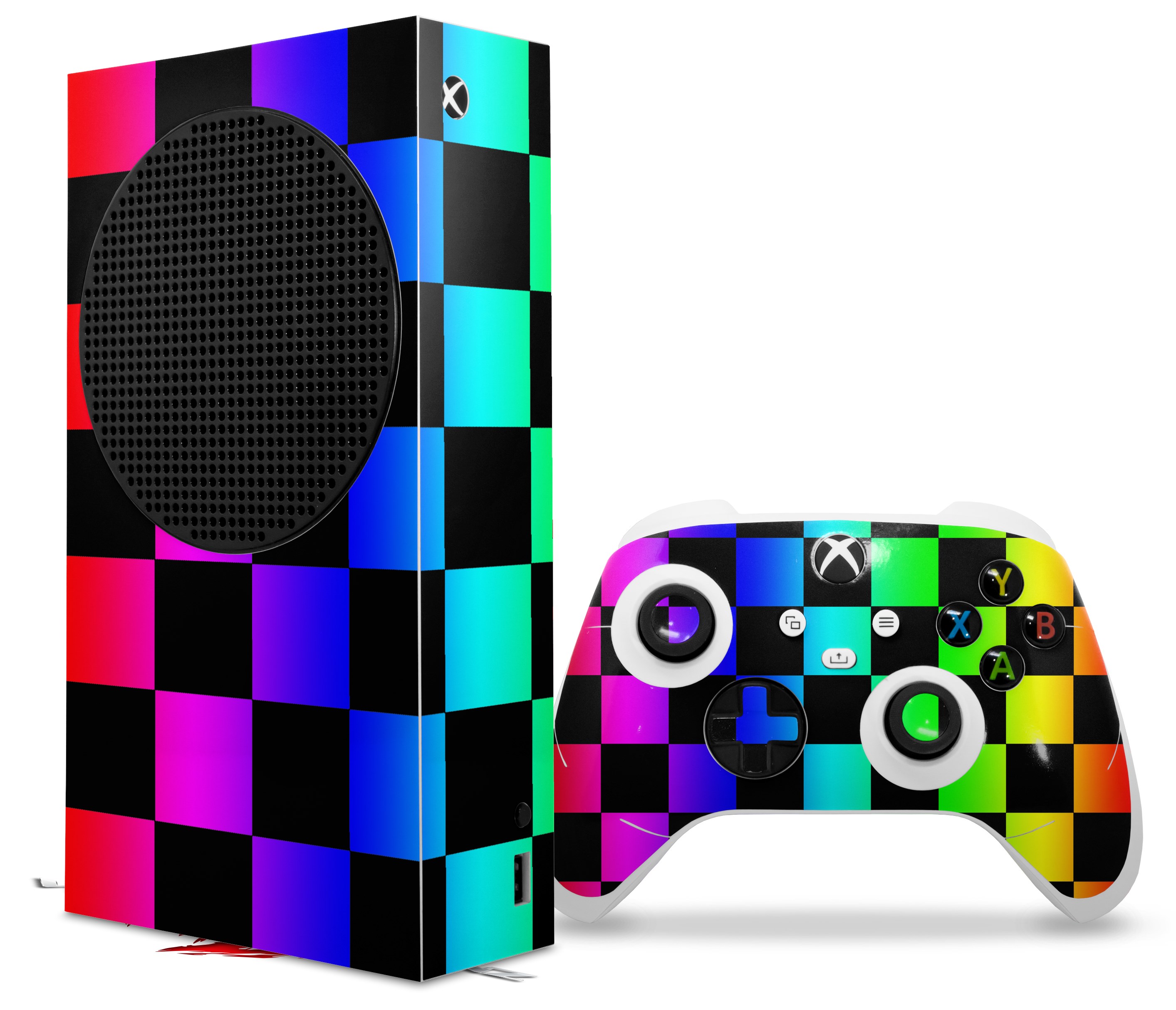 WraptorSkinz Skin Wrap compatible with the 2020 XBOX Series S Console and Controller Rainbow Checkerboard (XBOX NOT INCLUDED)