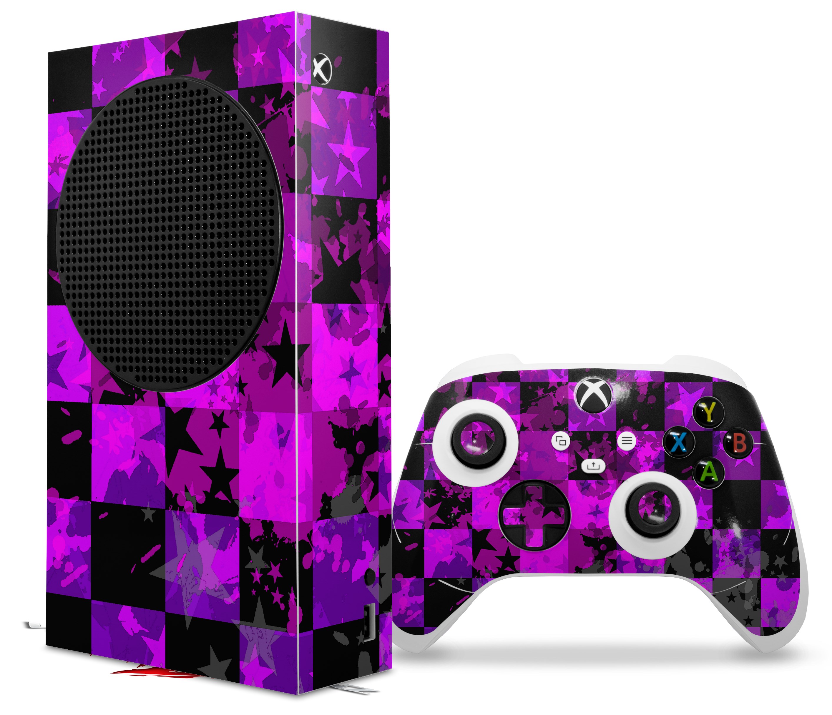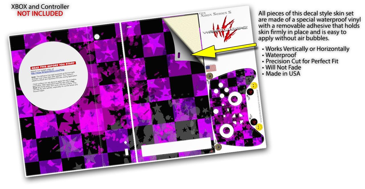 WraptorSkinz Skin Wrap compatible with the 2020 XBOX Series S Console and Controller Purple Star Checkerboard (XBOX NOT INCLUDED)
