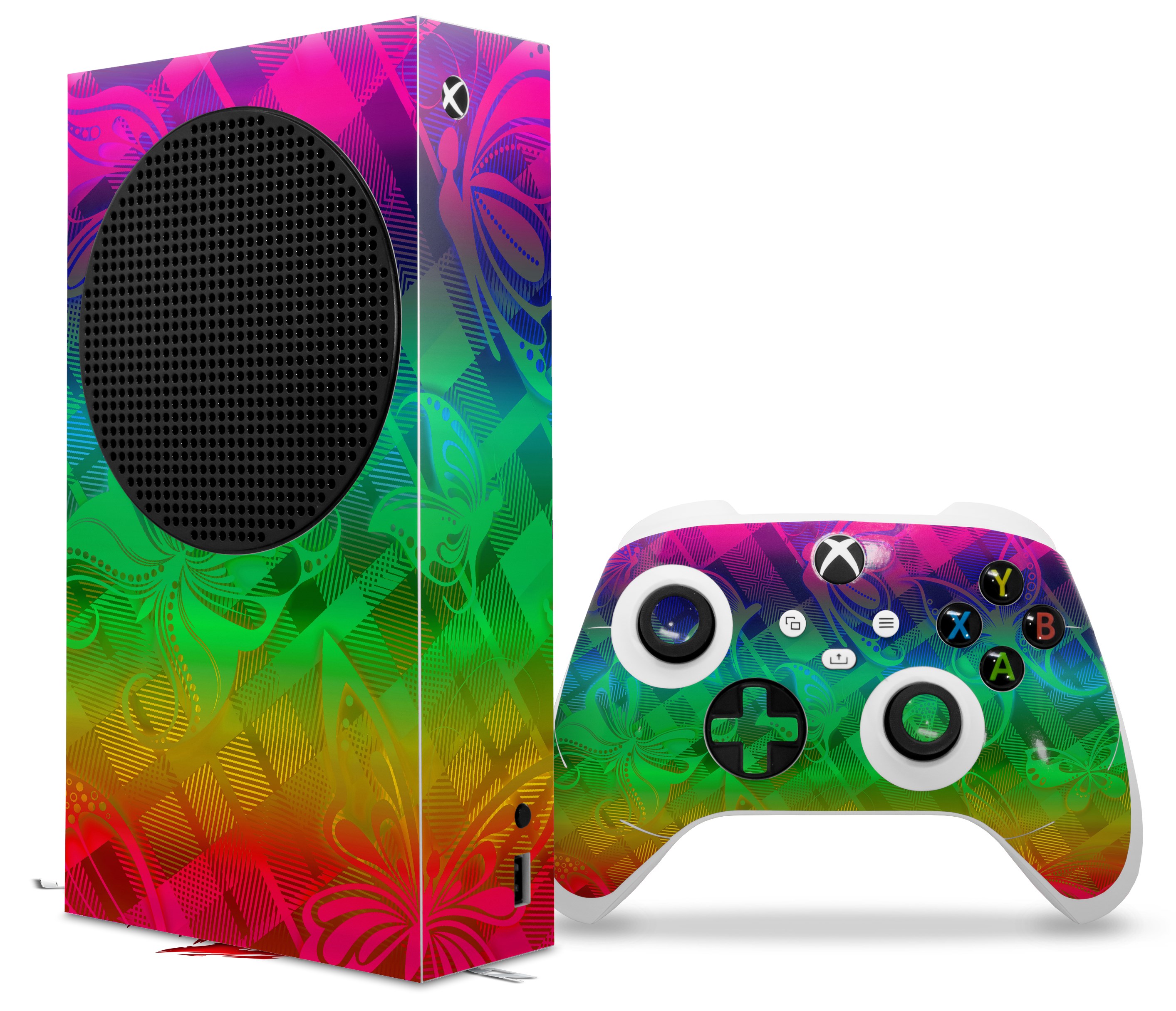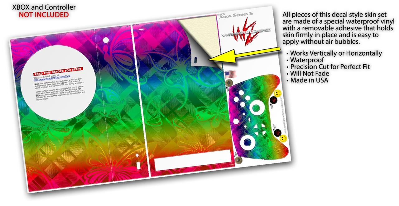 WraptorSkinz Skin Wrap compatible with the 2020 XBOX Series S Console and Controller Rainbow Butterflies (XBOX NOT INCLUDED)