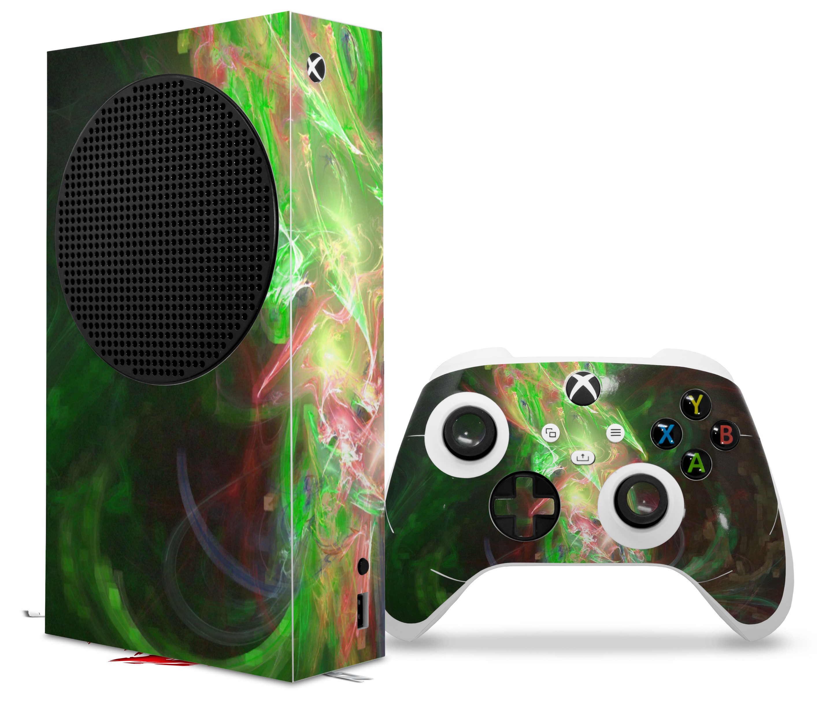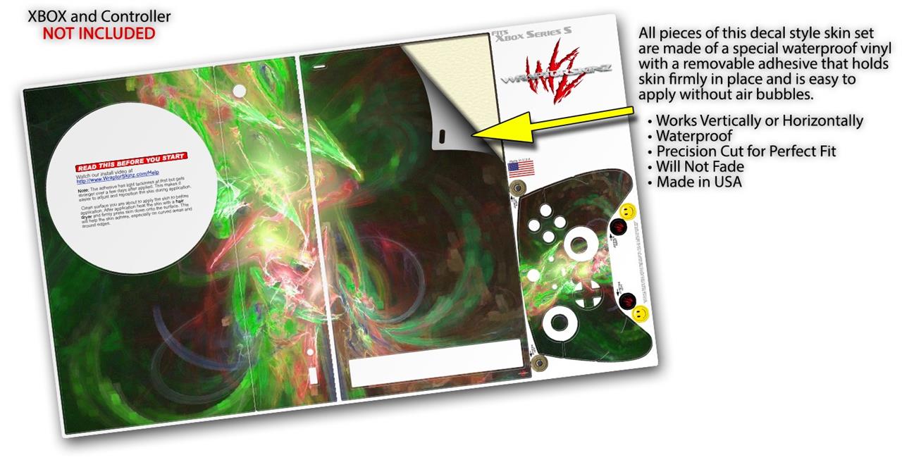 WraptorSkinz® skin wraps for the XBOX Series S gaming console and controller released November 2020 are printed using superb photo quality designs and vibrant colors printed with special fade resistant inks that last even in direct sun for years. WraptorSkinz are a composite of two layers of commercial grade materials. The bottom layer is a soft, flexible vinyl with a special removable adhesive that is easily positioned, applied without air bubbles. Next, we print the bottom layer with UV protected, fade resistant inks that deliver superb photo quality designs in vibrant colors. Last, we bond a professional grade laminate over the entire skin adding a glossy protective finish. This product is not affiliated with or endorsed by Microsoft or the XBOX brand.