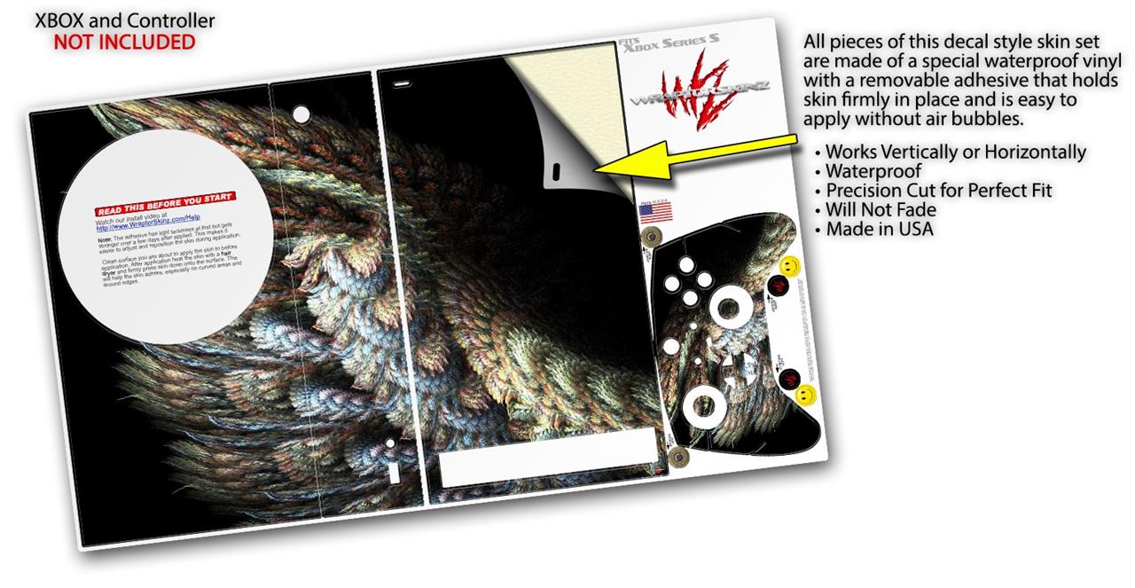 WraptorSkinz® skin wraps for the XBOX Series S gaming console and controller released November 2020 are printed using superb photo quality designs and vibrant colors printed with special fade resistant inks that last even in direct sun for years. WraptorSkinz are a composite of two layers of commercial grade materials. The bottom layer is a soft, flexible vinyl with a special removable adhesive that is easily positioned, applied without air bubbles. Next, we print the bottom layer with UV protected, fade resistant inks that deliver superb photo quality designs in vibrant colors. Last, we bond a professional grade laminate over the entire skin adding a glossy protective finish. This product is not affiliated with or endorsed by Microsoft or the XBOX brand.