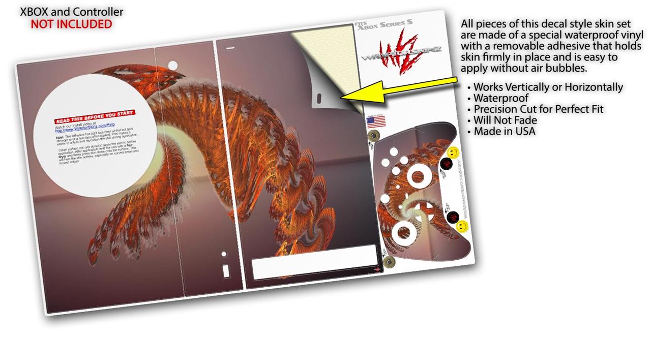 WraptorSkinz® skin wraps for the XBOX Series S gaming console and controller released November 2020 are printed using superb photo quality designs and vibrant colors printed with special fade resistant inks that last even in direct sun for years. WraptorSkinz are a composite of two layers of commercial grade materials. The bottom layer is a soft, flexible vinyl with a special removable adhesive that is easily positioned, applied without air bubbles. Next, we print the bottom layer with UV protected, fade resistant inks that deliver superb photo quality designs in vibrant colors. Last, we bond a professional grade laminate over the entire skin adding a glossy protective finish. This product is not affiliated with or endorsed by Microsoft or the XBOX brand.