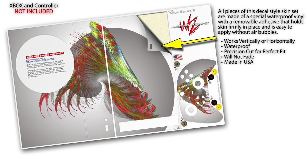 WraptorSkinz® skin wraps for the XBOX Series S gaming console and controller released November 2020 are printed using superb photo quality designs and vibrant colors printed with special fade resistant inks that last even in direct sun for years. WraptorSkinz are a composite of two layers of commercial grade materials. The bottom layer is a soft, flexible vinyl with a special removable adhesive that is easily positioned, applied without air bubbles. Next, we print the bottom layer with UV protected, fade resistant inks that deliver superb photo quality designs in vibrant colors. Last, we bond a professional grade laminate over the entire skin adding a glossy protective finish. This product is not affiliated with or endorsed by Microsoft or the XBOX brand.